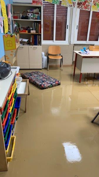 Una buona parte del lavoro riguarda anche la demolizione e il ripristino delle pareti e delle strutture in cartongesso presenti all’interno della scuola nonché il rifacimento di alcuni muri danneggiati. Dovranno essere sostituite anche tutte le porte interne e i pannelli del controsoffitto che hanno sofferto per l’umidità che si è creata all’interno della struttura. Completamente distrutto il pavimento in linoleum che è stato rimosso e che dovrà essere posato non appena saranno conclusi i lavori di risanamento. Tutta la scuola sarà poi imbiancata e quindi saranno riposizionati gli armadietti, i tavoli e i giochi.