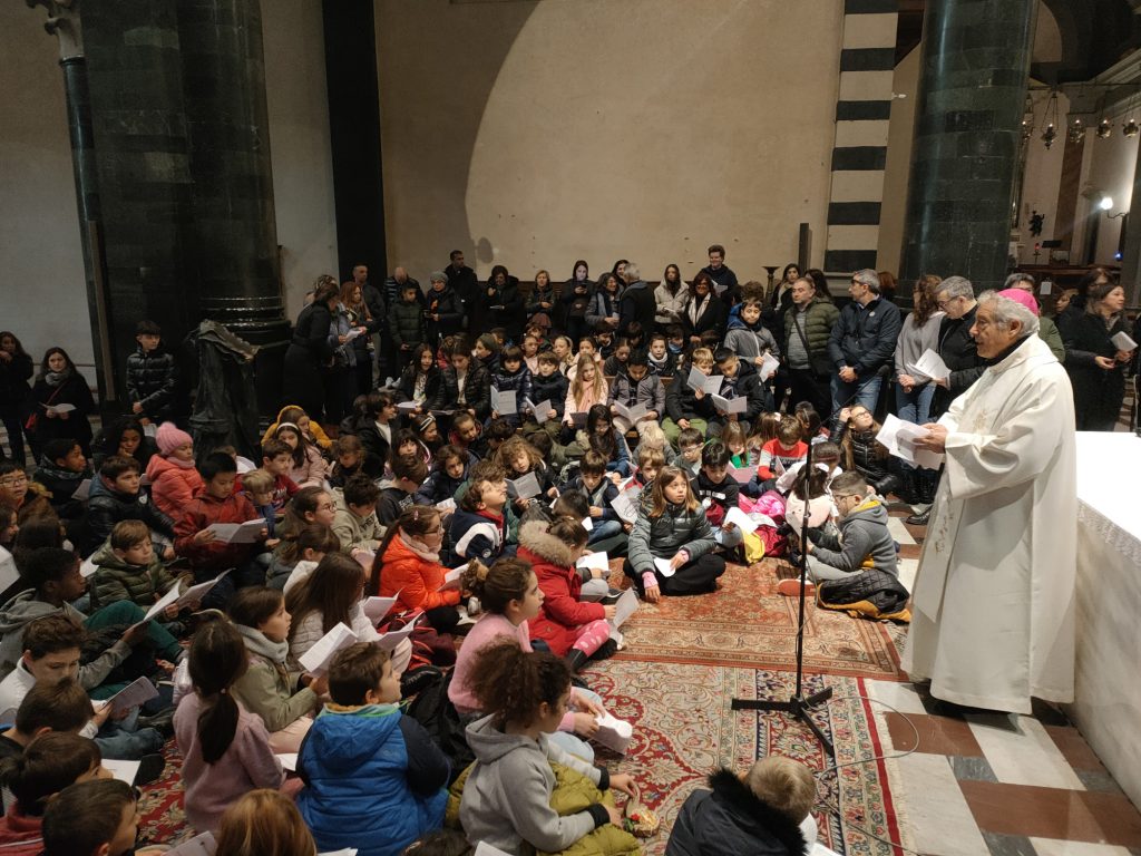 All’incontro tenuto in cattedrale questa mattina, sabato 2 dicembre, hanno partecipato moltissimi bambini e bambine provenienti da varie parrocchie della diocesi di Prato. Al termine dell’incontro il Vescovo ha benedetto le statuine del Bambinello da mettere nel presepe che ogni bimbo aveva portato con sé.