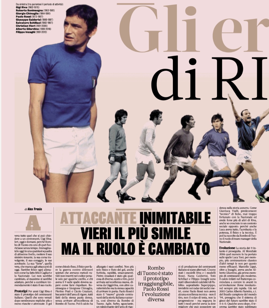 L’erede fisico di Riva designato dalla stampa è Vieri. Robusto, ancor più massiccio di Riva, come lui mancino di piede e capace di far gol di testa, di forza, di prepotenza. Come Riva, ebbe un’infanzia dura: tornò da solo dall’Australia, visse dal nonno mentre nel Santa Lucia mostrava a coetanei compagni e avversari le ossa che si era creato da solo, con un carattere di ferro e una vita non fatta di rose.