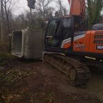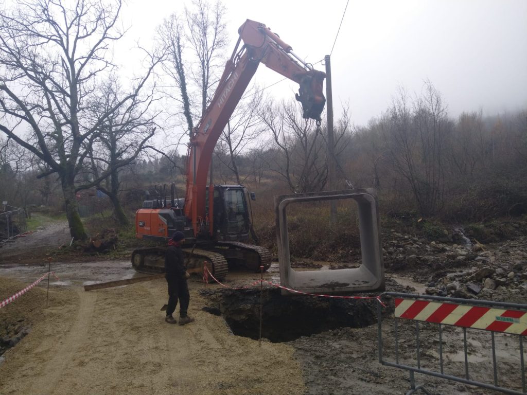 Stamattina è stato posizionato l’ultimo scatolare (un manufatto di cemento armato, utilizzato per creare condotte idrauliche, attraversamenti sotto il rilevato stradale o per corpo d’argine dei torrenti), che consente di ripristinare le strade dissestate e poter tornare ad attraversare con i veicoli vari corsi d’acqua nella zona di Albiano. Attraverso gli interventi di somma urgenza attivati, la ditta incaricata dal Comune ha liberato l’alveo del torrente Bagnolo sotto la località Campo solare, invaso da detriti e tronchi d’albero. Rimossi terra e i massi, trascinati sulla sede stradale da alcune frane, a partire dal grande smottamento che ha colpito la zona in prossimità dell’antica chiesa di Albiano.