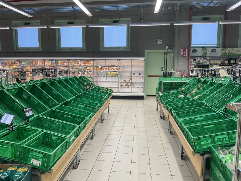 Del resto, la foto (sotto) del reparto ortofrutta, quasi completamente vuoto, alla Coop di Vaiano, scattata stamani a metà mattinata restituisce meglio di tante parole le difficoltà di approvvigionamento, che hanno riguardato anche le carni bianche, come spiega il vicepresidente della Coop Bisenzio Ombrone Paolo Gelli: “Per i freschi di frutta, verdura e le carni bianche abbiamo difficoltà di approvvigionamento visto che le due frane hanno di fatto isolato la valle in due punti a nord e a sud. Ci siamo attrezzati per le forniture con mezzi più piccoli che ci garantiscono la presenza della merce sugli scaffali. Con domani mattina, grazie alla riapertura dedicata di una corsia sulla frana a Vernio, riusciremo a far giungere i camion dall’uscita Badia in A1 e con 3-4 mezzi grandi riforniremo adeguatamente i negozi di Vaiano e Vernio”.
