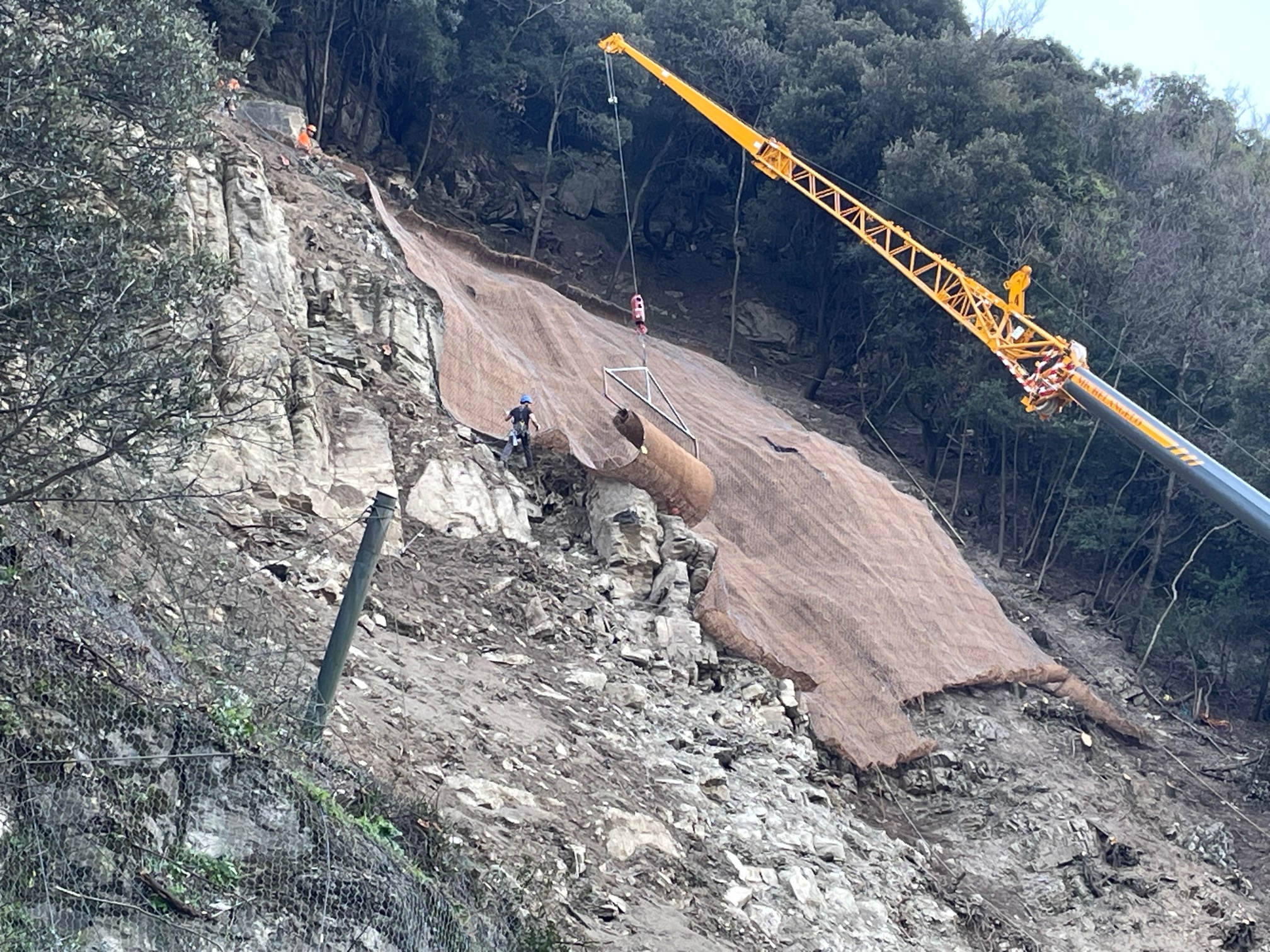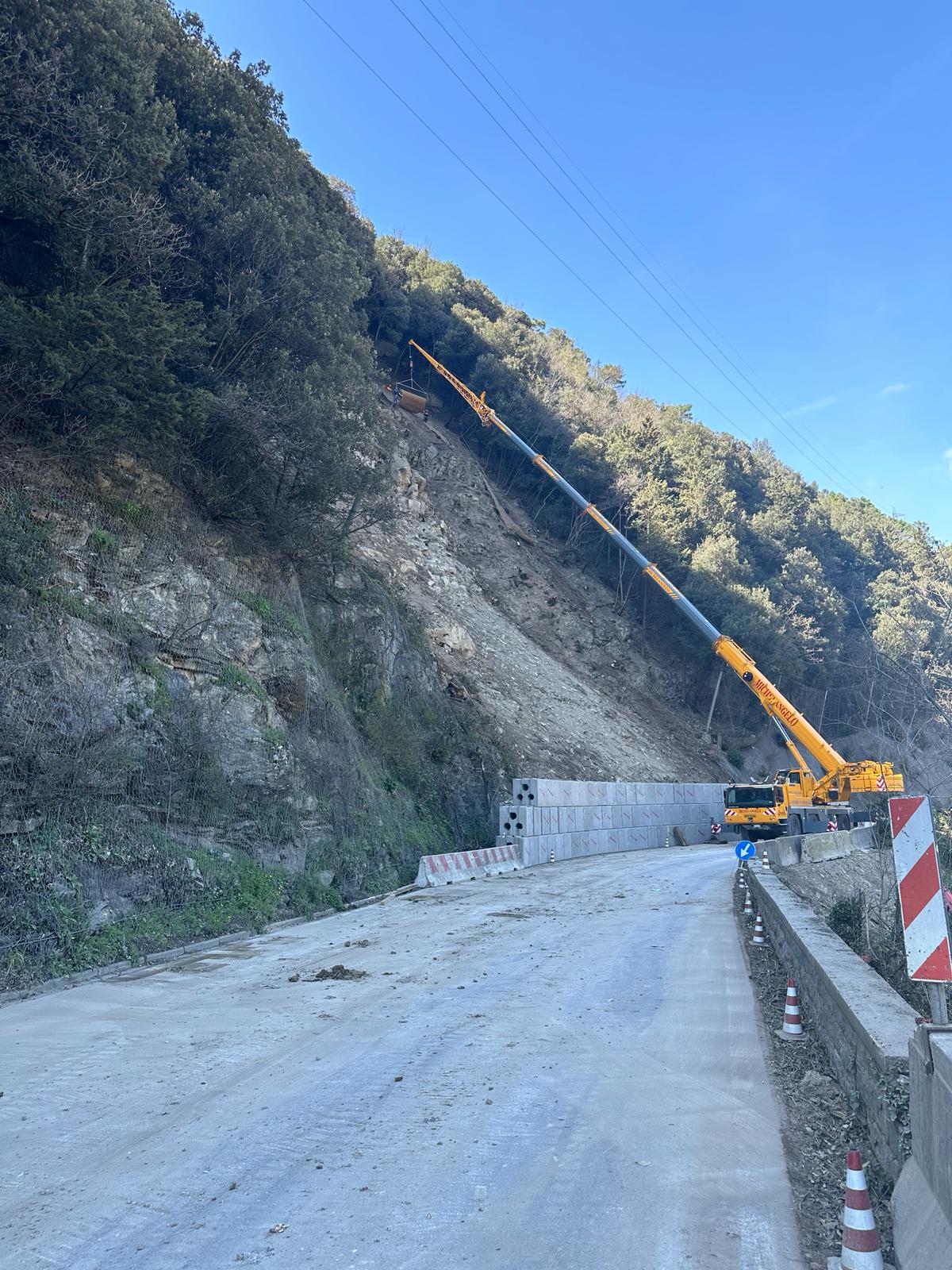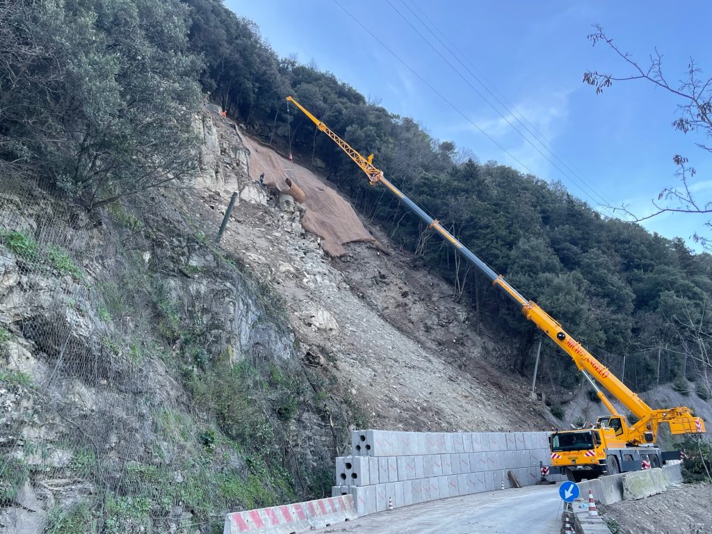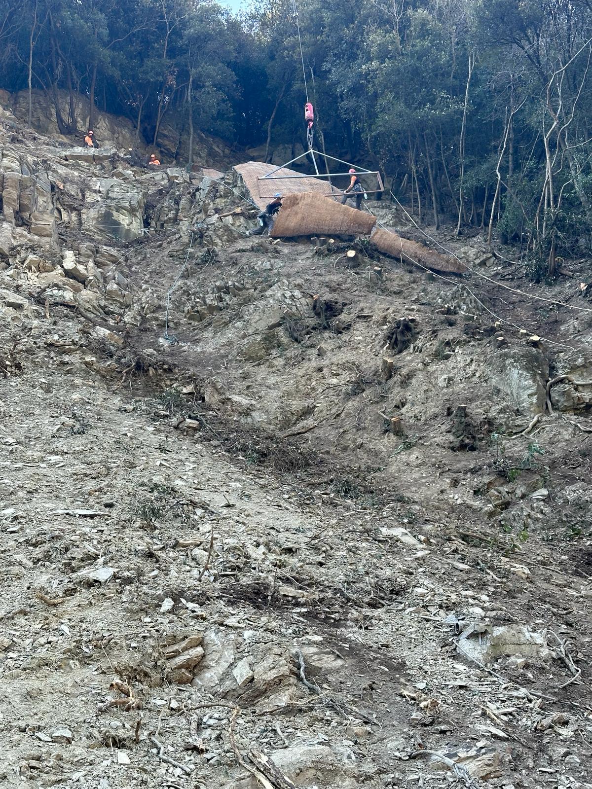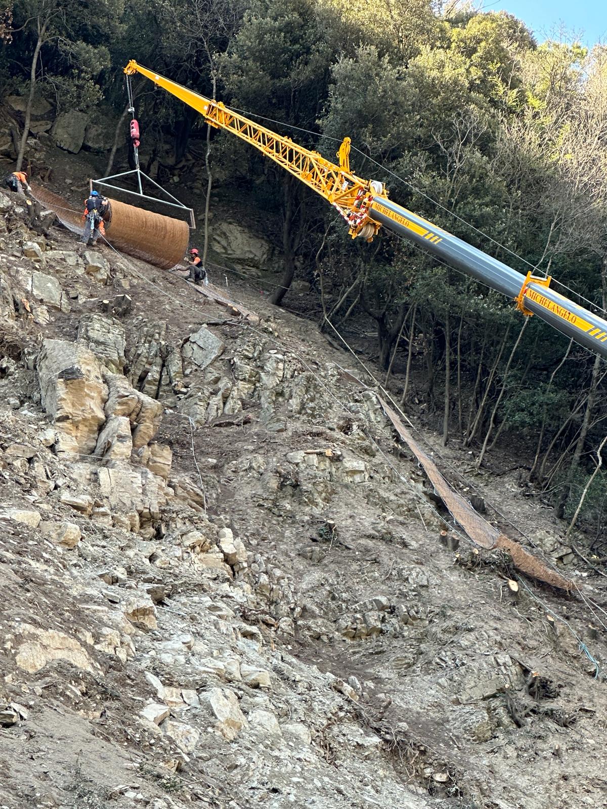 Stamani iniziata la posa delle reti para-detriti con un macchinario dal braccio estensibile di 60 metri