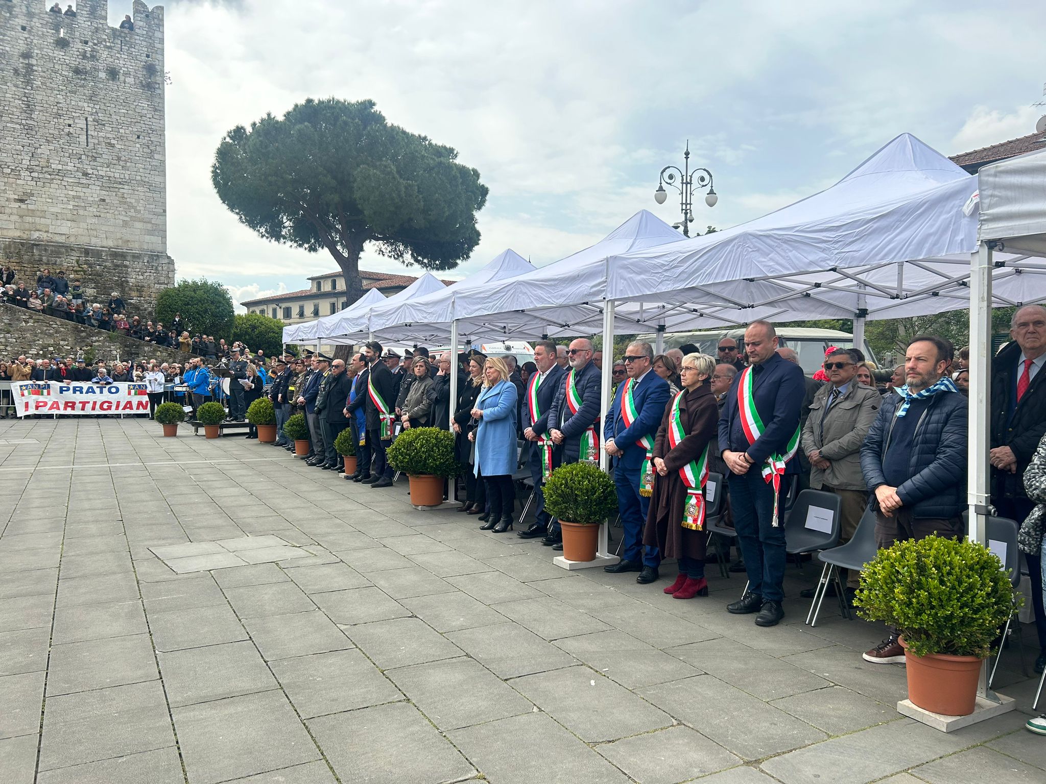 Presente alle celebrazioni anche il candidato sindaco del centrodestra Gianni Cenni. “L’egida della democrazia è un valore imprescindibile e voglio dirlo con estrema chiarezza nel giorno della ricorrenza della Liberazione d’Italia – sottolinea Cenni in una nota -. Non dico niente di nuovo: prima di me, tanti altri del mio schieramento politico, per ultimo il presidente del Consiglio, Giorgia Meloni, lo hanno detto, ripetuto e ribadito. Un principio saldo che è ancorato alla assoluta e ferma certezza – anche questa assunta a principio – di incompatibilità con qualsivoglia nostalgia dei regimi totalitari e dittatoriali che hanno contraddistinto il secolo scorso. Lo dico subito per evitare qualunque strumentalizzazione, qualunque richiamo ad una storia che tale resta ma che non può essere ancora oggi motivo di divisione tra generazioni che ogni anno, riunite in piazza delle Carceri, celebrano il 25 aprile. Dunque, le stelle polari di chi oggi si misura nella competizione politica, non possono che partire dalla democrazia intesa come libertà, patrimonio che non ha e non deve avere distinzioni per evitare un affievolimento dei valori fondanti e unitari della nostra Repubblica”.