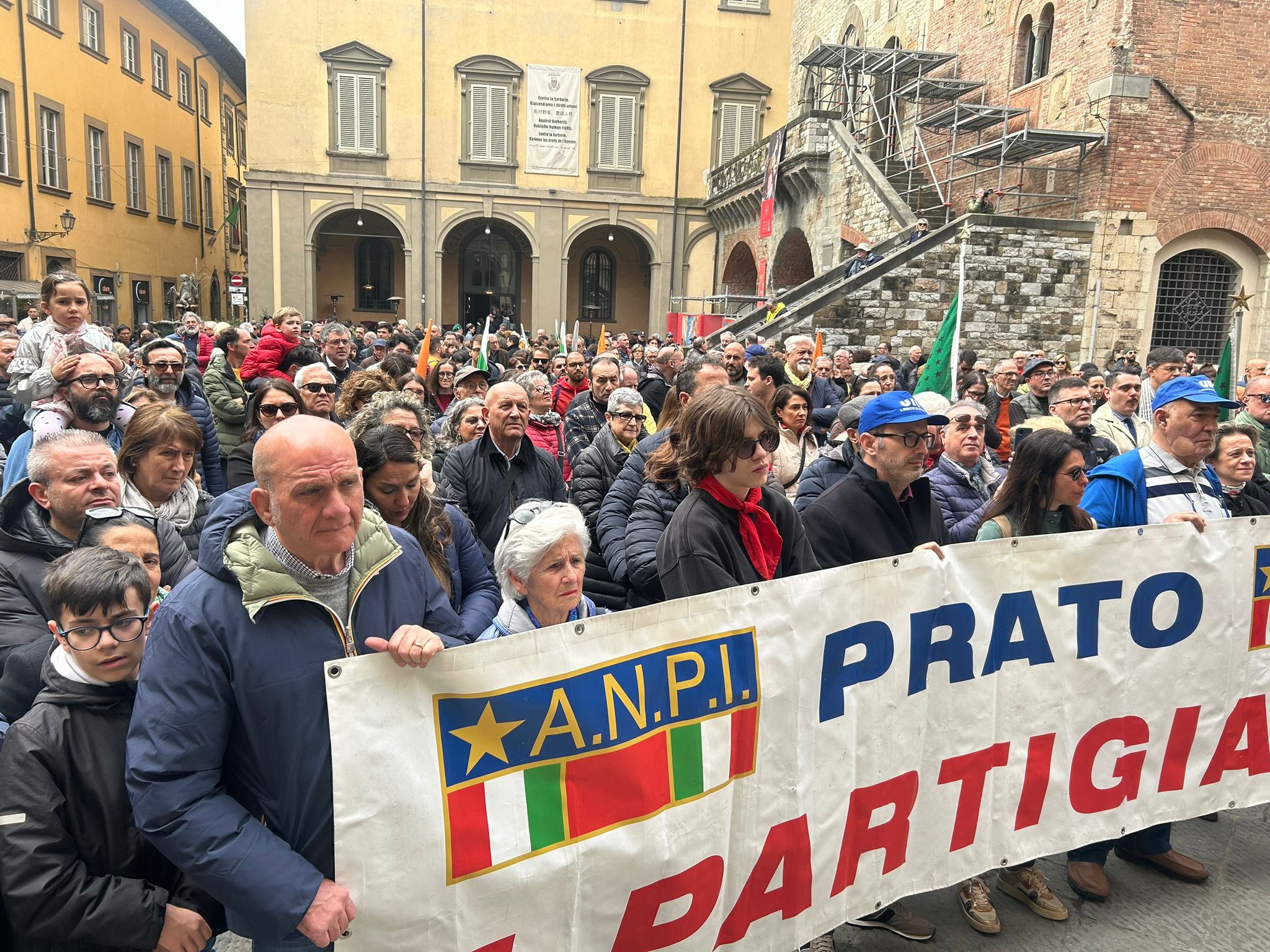 Anche Prato ha dato voce al monologo dello scrittore Antonio Scurati per celebrare il 25 Aprile, 79esimo anniversario della Liberazione dal nazifascismo. Dal palco di piazza del Comune il sindaco Matteo Biffoni e la presidente Anpi provinciale Angela Riviello hanno fatto riferimento più volte al discorso che Scurati avrebbe dovuto tenere in Rai, incentrato sul senso storico della ricorrenza. Biffoni ha letto in apertura diversi passaggi del testo mentre Riviello ha fatto riferimento all’articolo 21 della Costituzione. “E’ il momento di agire di fronte ad ogni colpo diretto contro la libertà di espressione e di informazione, riteniamo per questo l’annullamento dell’intervento di Scurati in un programma Rai un fatto gravissimo”, ha sottolineato Riviello, citando l’ultimo capoverso del monologo. “Finché quella parola – antifascismo – non sarà pronunciata da chi ci governa, lo spettro del fascismo continuerà a infestare la casa della democrazia italiana”. Riviello ha toccato anche altri temi: dal lavoro al diritto di voto (invitando tutti ad esercitarlo), fino al ripudio della guerra e alla richiesta di un disarmo integrale, come sollecitato da Papa Francesco. Un passaggio anche alle manganellate agli studenti: “Il manganello – ha detto Riviello – dovrebbe stare lontanissimo dalle manifestazioni”. “Siamo in campagna elettorale, questo è il momento migliore perché chi si propone di guidare il nostro Paese scelga da che parte stare, celebri degnamente il 25 aprile, pronunci quella parola e si definisca antifascista. Nell’Italia nata dalla Resistenza è naturale chiedere questo”, ha ribadito la presidente Anpi.