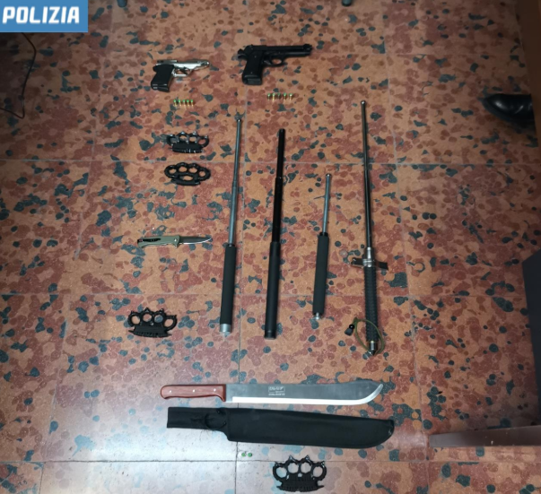 Nella tarda serata di ieri, 5 aprile, la squadra di polizia amministrativa della questura di Prato ha effettuato controlli in alcuni esercizi di carattere ricreativo a conduzione cinese ubicati nella zona di via Roma. Durante le fasi di identificazione in un locale di intrattenimento, gli agenti hanno notato che un giovane, dipendente del locale, cercava di guadagnare l’uscita dopo aver cercato di celare uno zaino tra gli avventori, ma gli agenti prontamente hanno proceduto a fermarlo. Dall’identificazione il soggetto è risultato essere un diciannovenne di nazionalità cinese con vari precedenti di polizia. Durante la perquisizione, gli è stato trovato nella tasca del giubbotto un tirapugni in metallo della lunghezza di oltre dieci centimetri. Nello zaino aveva invece cercato di occultare 4 sfollagente telescopici, un coltello a serramanico, due tirapugni in metallo, due pistole scacciacani e cartucce a salve calibro 8 e 9. Nell’abitazione la polizia ha trovato uno storditore elettrico e altre cartucce. Tutto il materiale è stato sequestrato e il diciannovenne è stato denunciato per porto abusivo di armi.