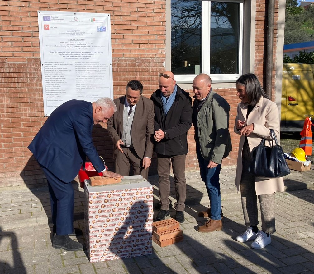 Prima pietra per la nuova Casa di comunità di Vaiano che verrà realizzata, con le risorse Piano Nazionale di Ripresa e Resilienza (Pnrr), attraverso la conversione e l’ampliamento del Distretto sociosanitario di via Val di Bisenzio. La Casa di comunità rappresenta un’evoluzione del modello Casa della salute: a Vaiano troveranno spazio ambulatori per i medici di medicina generale e gli specialisti di varie discipline (oculistica, ginecologia, cardiologia, reumatologia, otorinolaringoiatria, psichiatria), che potranno contare anche su strumenti di diagnostica leggera come, ad esempio, gli ecografi. A lavori ultimati la Casa disporrà di uno spazio di circa 830 metri quadrati. I lavori di ampliamento si concluderanno nell’arco di un anno, per un quadro economico complessivo di 1 milione e 150 mila euro, coperto per circa 700 mila euro da fondi Pnrr, per 383 mila euro dal fondo complementare della Regione e per la quota rimanente dalla Asl Toscana Centro.