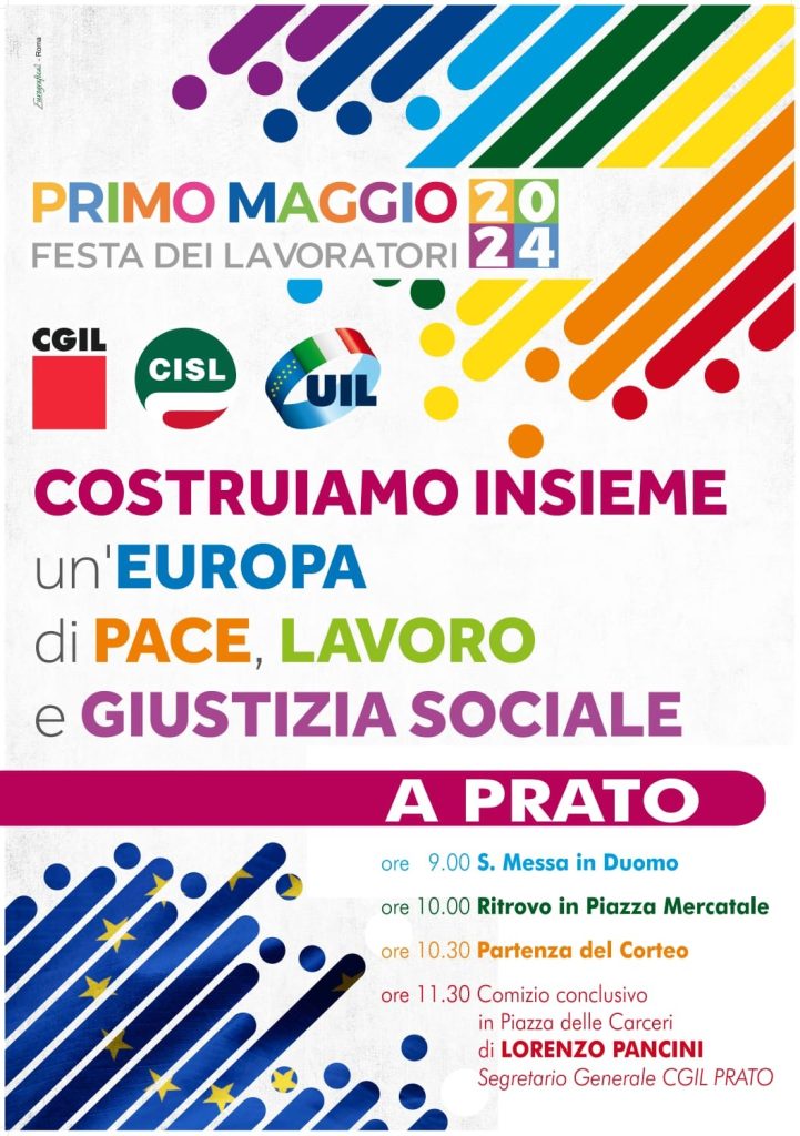 “Costruire insieme un’Europa di pace, lavoro e giustizia sociale”, è questo il tema che animerà le manifestazioni promosse da Cgil, Cisl e Uil per il 1° Maggio, che come di consueto a Prato vedrà da piazza Mercatale la partenza del corteo, a cui prenderà parte anche il sindaco Matteo Biffoni con il Gonfalone comunale e il Corpo dei Valletti.