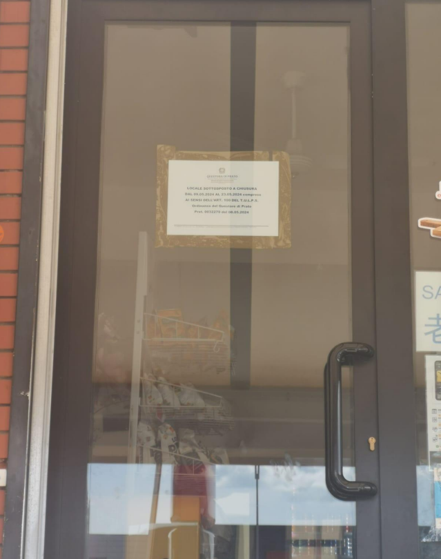 Il questore ha emesso un provvedimento di chiusura di 15 giorni nei confronti di un bar di via Erbosa gestito da un cinese. Il provvedimento è stato adottato dopo un controllo nel locale eseguito dai carabinieri lo scorso 5 maggio, quando i militari sorpresero in flagranza di reato uno spacciatore (poi arrestato) che cedeva droga ad un consumatore. Nel locale vennero trovati 10 grammi di cocaina e 20 di hashish sopra una mensola e altri 6 grammi di hashish nascosti nel bagno.