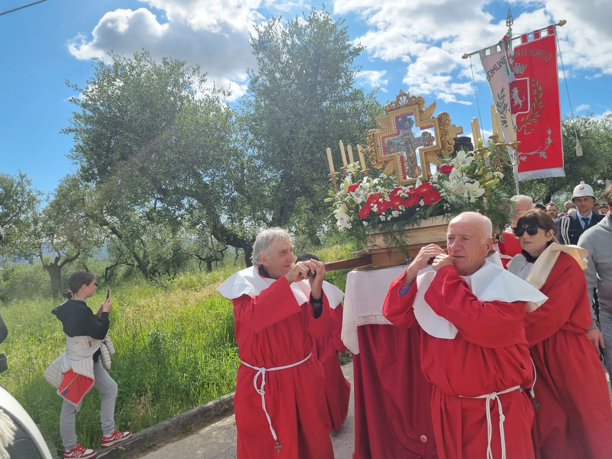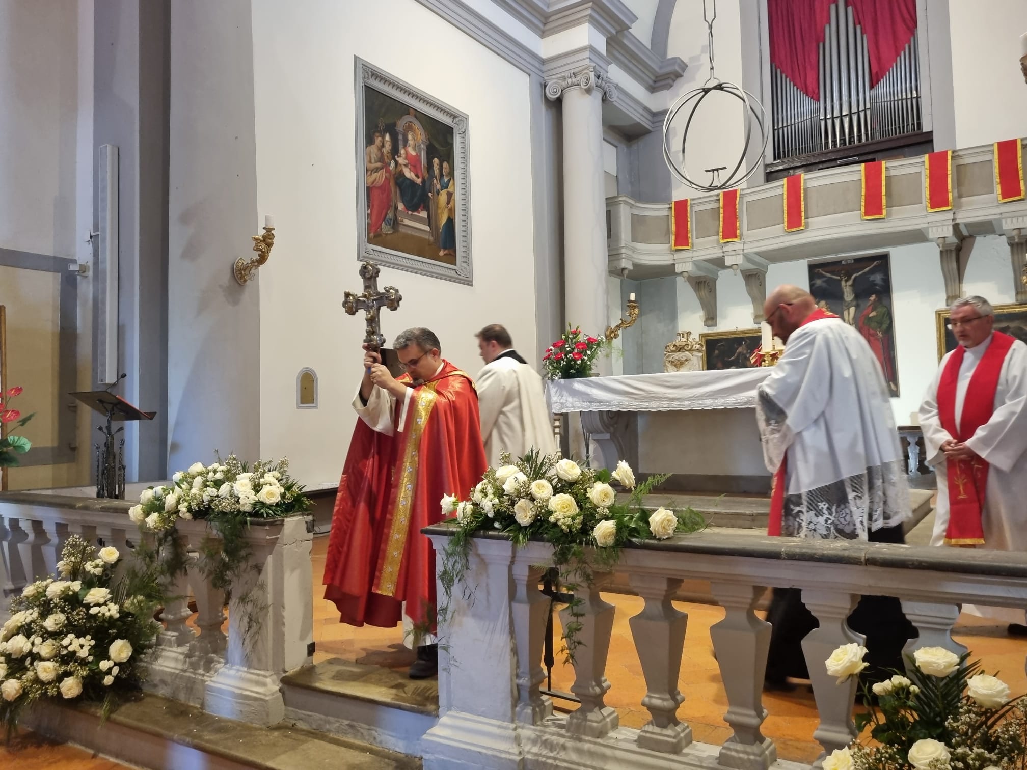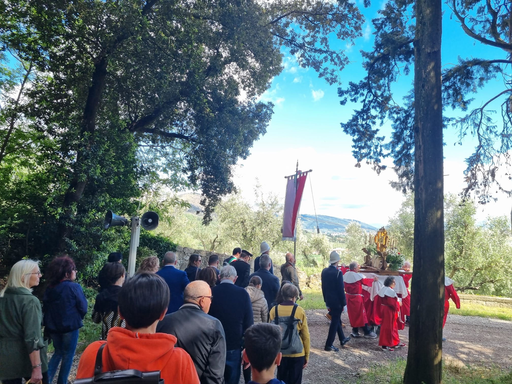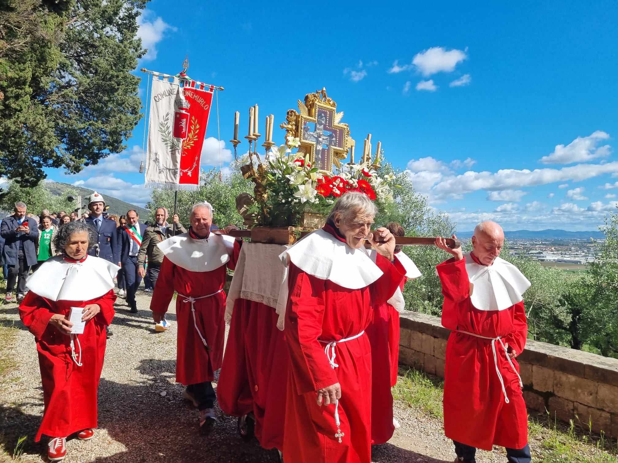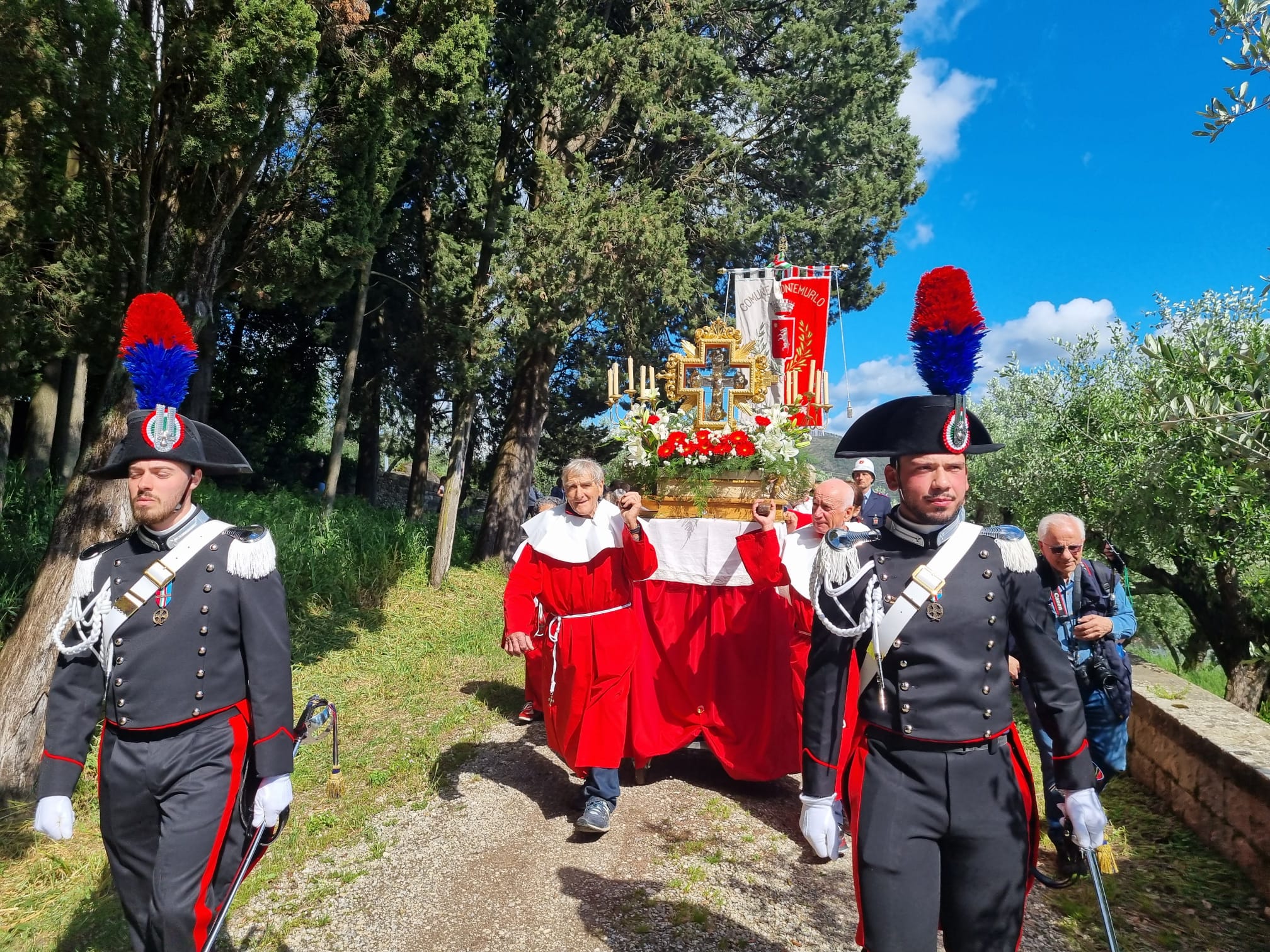 Una festa quella della Croce, importante per la tradizione e per i sentimenti di tutta la comunità. La Croce è infatti un simbolo e occasione di riflessione per pensare al futuro, alle necessità della comunità e alla pace nel mondo. In tanti anche quest’anno hanno voluto partecipare alla tradizionale processione: la piccola croce astile in lamina d’argento, risalente al XIV, ha infatti lasciato la teca sopra l’altare maggiore della pieve di San Giovanni Decollato alla Rocca dove di solito è custodita, ed è stata portata in processione scortata da due carabinieri della locale Tenenza in alta uniforme e dai custodi della Croce con i tradizionali abiti rossi e bianchi. La musica della Filarmonica Giuseppe Verdi ha accompagnato lungo tutto il percorso la processione, mentre le celebrazioni religiose sono state guidate da don Gianni Gasperini, da don Jarek della parrocchia di Fornacelle, da don Gildas della chiesa di Bagnolo e da don Roland. A seguire il gonfalone del Comune di Montemurlo con il sindaco, gli assessori della giunta, dalla comandante della polizia municipale Enrica Cappelli e da quello della Tenenza dei Carabinieri, Quintino Preite. Tante le persone che hanno seguito la croce lungo il percorso che dalla piazza della Rocca è scesa in località Morecci ed ha attraversato le strade della vecchia Montemurlo fino al tabernacolo del Campo Santo, luogo, secondo la tradizione, del miracoloso ritrovamento dopo il trafugamento dalla Pieve di Rocca.