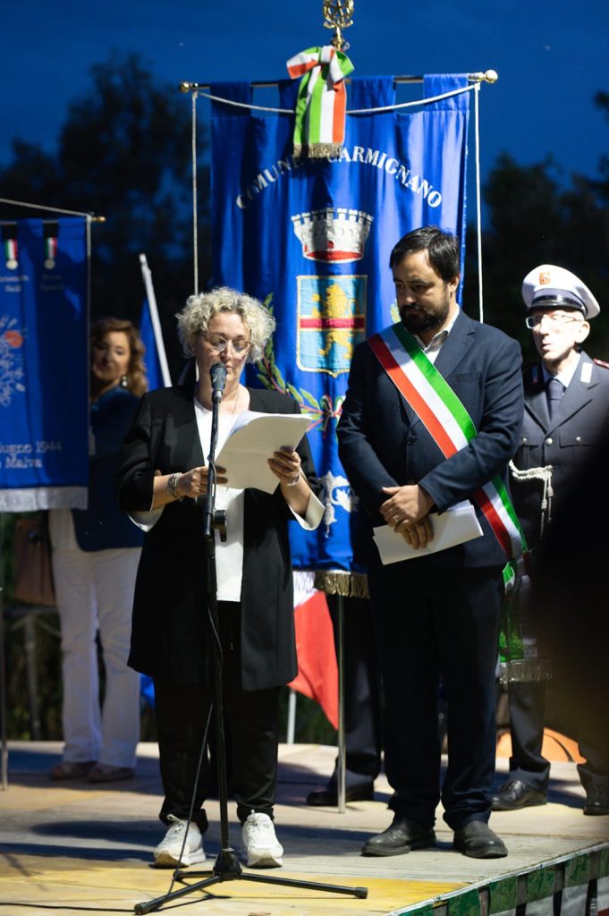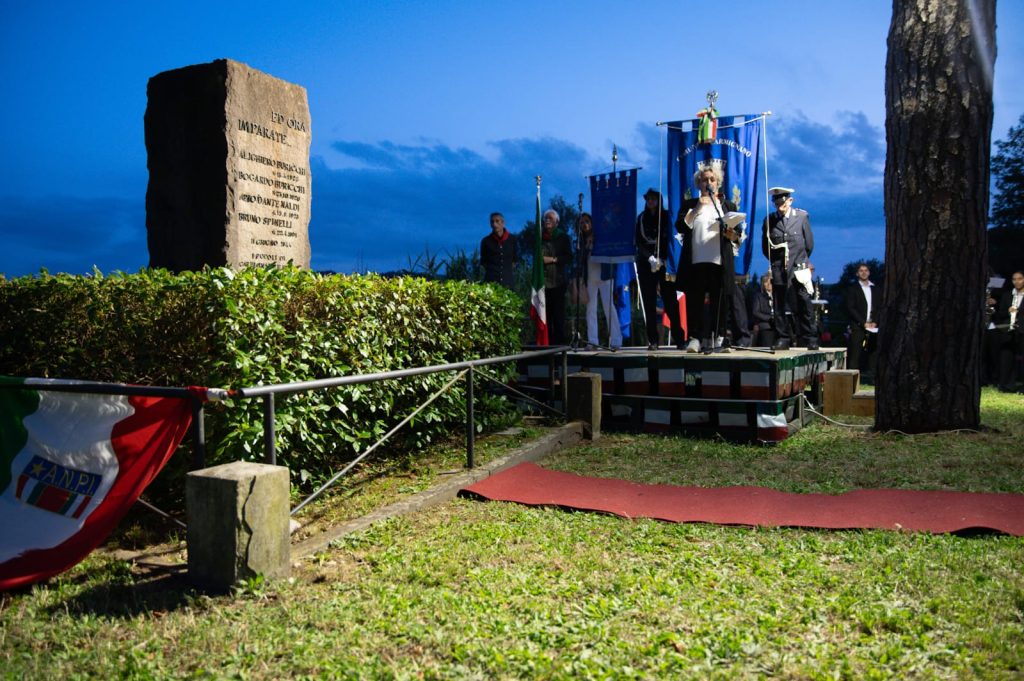 «Che cosa lega, 80 anni dopo, quel gesto alle nostre esperienze attuali, quei giovani ai giovani d’oggi?», si è chiesta la professoressa Annalisa Savino, la dirigente del liceo scientifico “Leonardo da Vinci” di Firenze che, nel febbraio dello scorso anno dopo il pestaggio di due studenti da parte di giovani di destra, scrisse ai suoi alunni una lettera sul fascismo, nell’orazione ufficiale della ricorrenza, a cui hanno preso parte insieme alla vice prefetto Simona Sannino e agli amministratori della Provincia di Prato e degli altri Comuni, anche le neo sindache di Vaiano Francesca Vivarelli e Vernio Maria Lucarini.