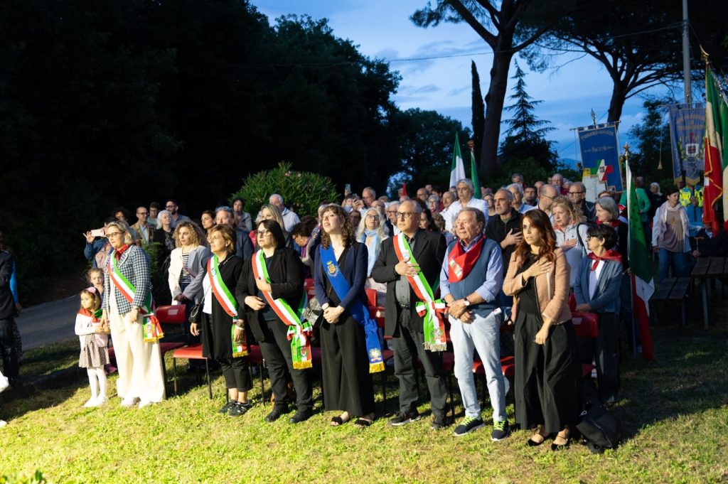 «Un’estate di fuoco», come dal titolo del romanzo di Walter Nesti, il richiamo di David Desideri, presidente della sezione Anpi di Carmignano, alla notte di 80 anni fa: la notte, in cui l’11 giugno del 1944, quattro partigiani (Bogardo e Alighiero Buricchi, Ariodante Naldi, Bruno Spinelli), tutti poi insigniti con la medaglia d’argento al valor militare, persero la vita nel far saltare un convoglio militare in partenza dalla stazione di Carmignano per la Germania, pieno di esplosivo raccolto nel vicino stabilimento Nobel: «Un treno di morte» l’ha definito il sindaco di Carmignano Edoardo Prestanti nella cerimonia promossa dal Comune, in collaborazione con il comitato 11 Giugno, il circolo Arci “A. Naldi”, l’Anpi di Prato e Carmignano svoltasi, come di consueto, dopo il corteo con i gonfaloni dei Comuni, davanti al cippo di Poggio alla Malva che ricorda il sacrificio dei quattro «combattenti per la libertà», come li ha altresì definiti il primo cittadino.