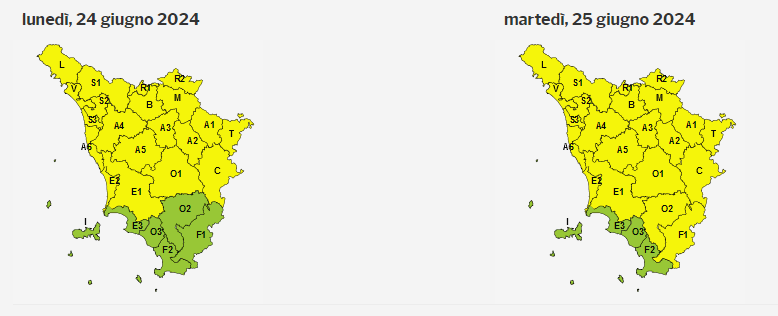 Intanto la sala meteo regionale ha esteso l’allerta gialla per rischio idrogeologico e temporali sulla Toscana centro-settentrionale fino alle 21 di domani, martedì 25 giugno.