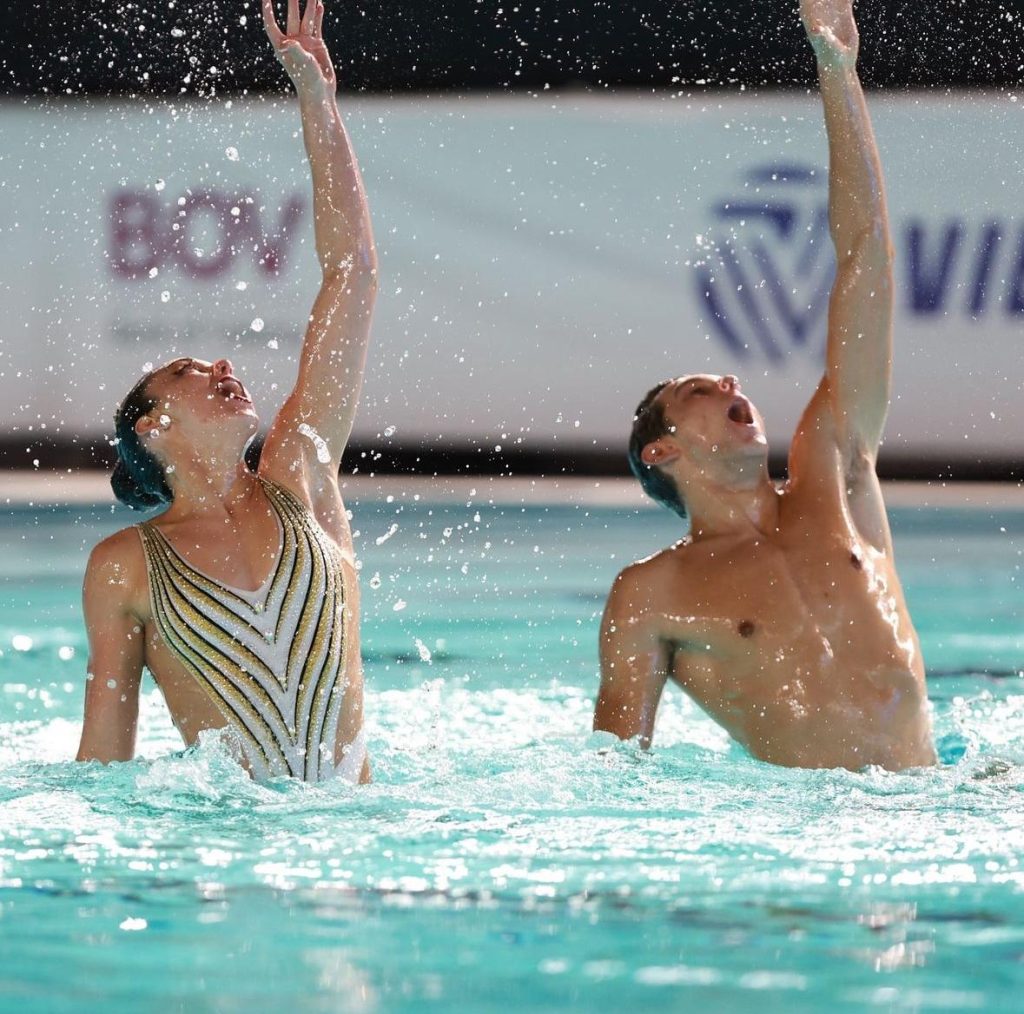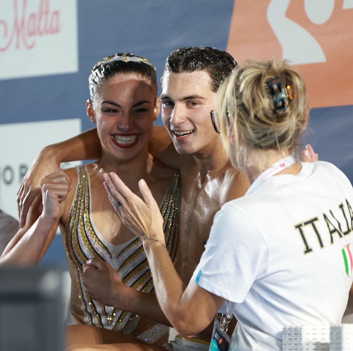 Gabriele Minak, portacolori della Futura Nuoto Prato, insieme a Filippo Pelati e Giorgio Minisini è tra gli esponenti principali del movimento maschile italiano del nuoto artistico; Ginevra Marchetti, compagna di club, è tra le giovani più promettenti: nel 2022, a 15 anni, è stata campionessa italiana per la categoria ragazze vincendo gli obbligatori davanti a 435 atlete e quest’anno è stata premiata “atleta dell’anno” dal Comune di Montemurlo. Gabriele e Ginevra quest’anno sono stati d’argento agli assoluti primaverili di Riccione, alle spalle di Minisini e Pedotti.. La squadra è quarta dopo il preliminare free. Beatrice Andina, Chiara Benesso, Valentina Bisi, Caterina Cucco, Greta Gitto, Ginevra Marchetti, Flaminia Vernice e Lara Pollini chiudono con 255.0334. Davanti, con margine rispetto alle altre nazionali, c’è la Spagna con 311.5668.