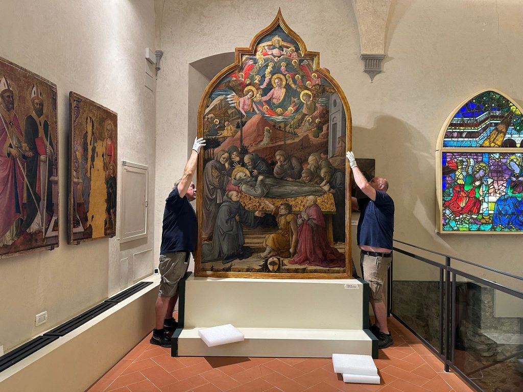 Sono tornate a casa, nel Museo dell’Opera del Duomo di Prato, le Esequie di San Girolamo dipinte da Filippo Filippi. La grande opera, una pala d’altare alta quasi tre metri, era in prestito a Forlì e per cinque mesi è stata una delle principali attrazioni della mostra dedicata ai Preraffaelliti. Questa mattina il dipinto è stato riconsegnato alla Diocesi di Prato e ricollocato nella sala del Rinascimento, che ospita opere del XV-XVI secolo.