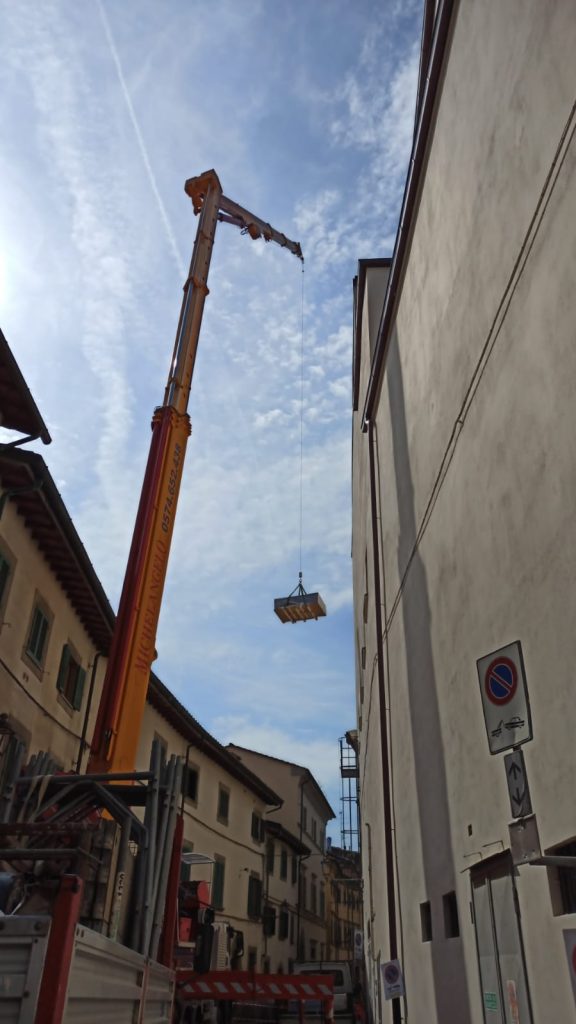 Una gru alta circa 15 metri che svetterà sui tetti del Teatro Politeama Pratese lunedì 29 luglio. Servirà per posizionare i pannelli solari per l’installazione dell’impianto fotovoltaico sulla copertura del Politeama, dopo una prima movimentazione effettuata nella giornata di mercoledì sul lato di via dei Tintori. Il teatro pratese diventerà più “green” ed efficiente dal punto di vista energetico, uno dei pochi in Italia, grazie al cofinanziamento europeo del Piano nazionale di ripresa e resilienza (400mila euro) che ha premiato il progetto di riconversione in una struttura più attenta all’ambiente e al risparmio di energia. Iniziati alla fine di giugno, ora entrano nel vivo i lavori diretti dai professionisti Lara Righi e Matteo Gestri per la Gpa Partners dell’ingegner Paolo Spinelli ed eseguiti dalla società AzzeroC02. Un calendario programmato per il periodo estivo per scandire la marcia “green” del Politeama, complice la pausa nella programmazione artistica, in modo da concludere tutti gli interventi entro il mese di ottobre. Dal canto suo, il teatro riuscirà ad economizzare i costi dell’energia e del riscaldamento grazie all’utilizzo del fotovoltaico dal minimo impatto visivo: il tutto con il parere favorevole della Sovrintendenza. Nel 2022 il Politeama Pratese vinse il bando del Ministero della Cultura nell’ambito del Pnrr, ottenendo un finanziamento di 400mila euro che è il massimo previsto per la tipologia dei teatri fino a mille posti nella misura dell’80 per cento (il resto con fondi propri), piazzandosi fra i 348 interventi finanziati dall’Unione Europea su scala nazionale. Grazie a un sapiente lavoro di squadra fra lo staff interno, gli studi di professionisti e le imprese coinvolte, si è arrivati in fondo dando il via a più tipologie di interventi per la riconversione “green” del più grande teatro cittadino.