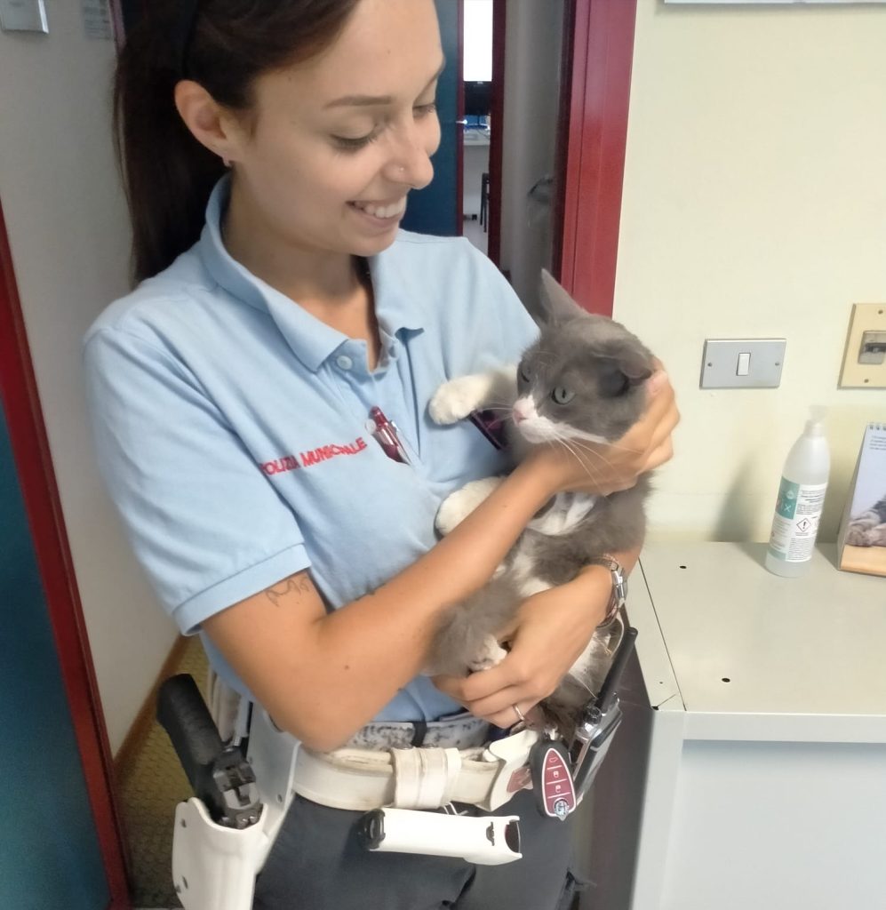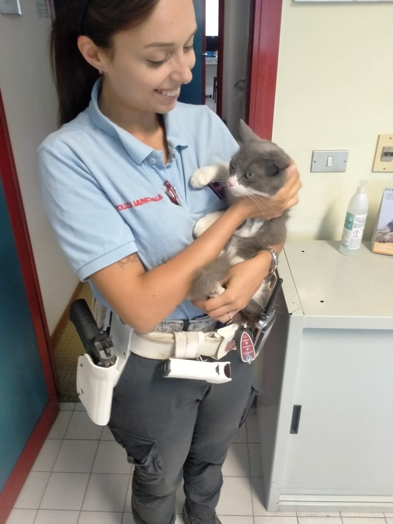 La polizia municipale offre stallo ad una gattina salvata per strada al comando di piazza dei Macelli