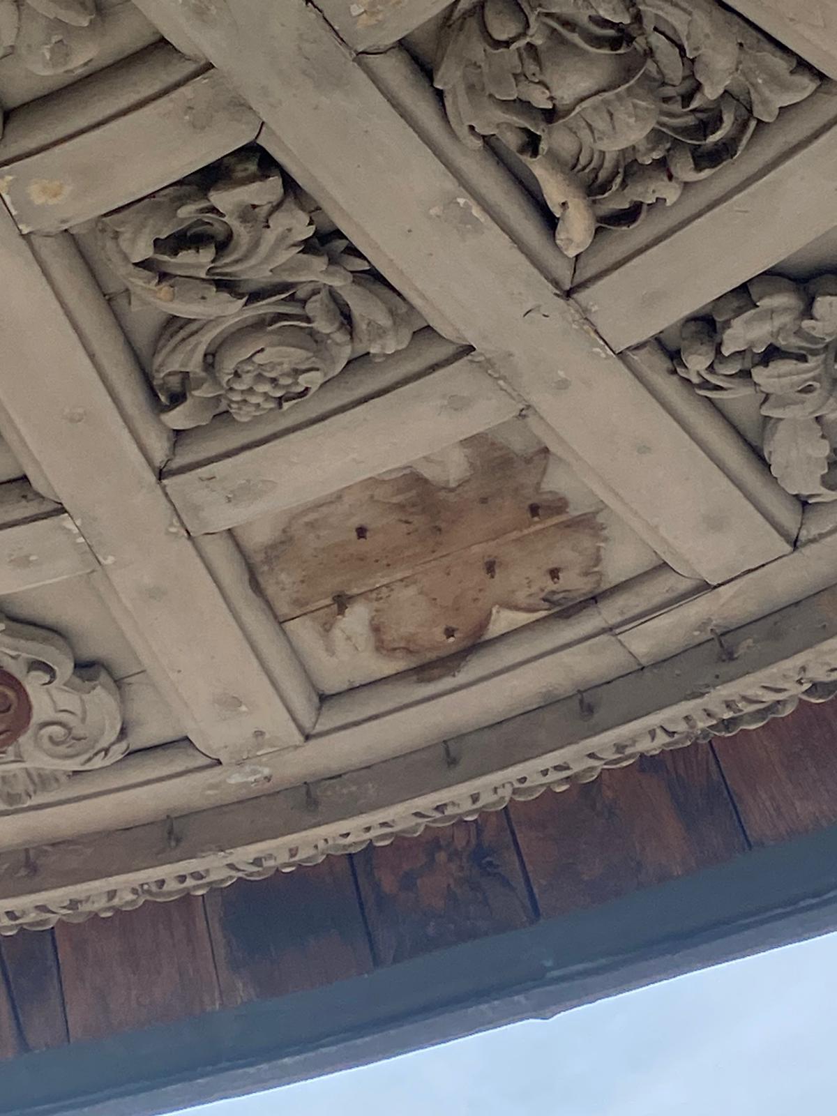 Chiamati da un passante, i pompieri hanno raggiunto il pulpito con un autoscala e recuperato il "pezzo" pericolante. L'area adesso è transennata. Il vicario mons. Daniele Scaccini: «non ci sono problemi di stabilità, faremo una verifica generale per garantire la sicurezza in vista dell'8 settembre»