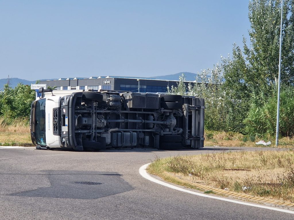 Un autoarticolato si è ribaltato nel percorrere una rotatoria al Macrolotto, fra via Berlinguer, via Tourcoing e via Chemnitz. L’incidente è avvenuto stamani, attorno alle 10; non ci sono altri veicoli coinvolti. Il conducente del tir, di una ditta di autotrasporti italiana, è per fortuna illeso. Non ci sono state conseguenze immediate sul traffico, visto che gli accessi e la percorribilità della rotatoria non sono stati compromessi. Sul posto è intervenuta una pattuglia della polizia municipale che ha presidiato la zona e fornirà supporto per le operazioni di rimozione del mezzo, a carico della ditta che farà intervenire una gru. Durante l’intervento potrebbe rendersi necessaria la chiusura della rotatoria.