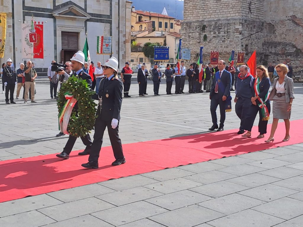 Al termine il corteo ha ripreso il suo cammino per le vie del centro e diretto in piazza delle Carceri dove alla presenza delle associazioni combattentistiche e d’arma, la sindaca Bugetti, il prefetto Michela Savina La Iacona, il presidente della Provincia Simone Calamai e Fiorello Fabbri per Anpi, hanno deposto una corona al monumento ai caduti.