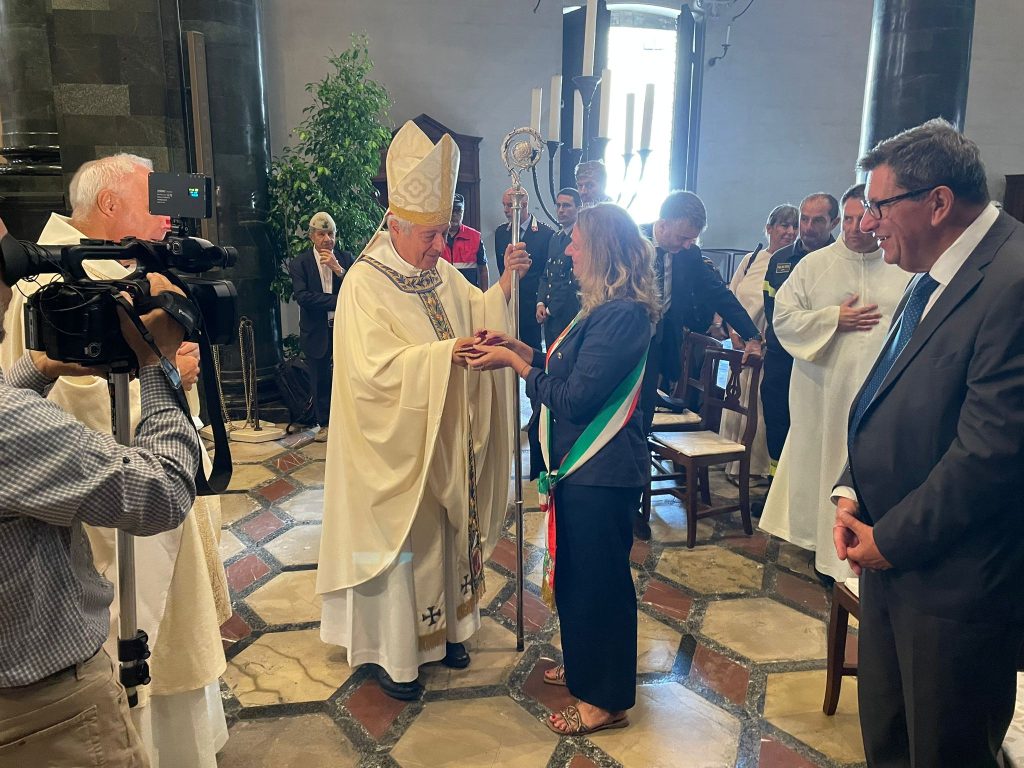 Al termine, per la prima volta in questa occasione, la sindaca ha consegnato le due chiavi di proprietà del Comune al vescovo Nerbini per l’apertura della cassaforte che custodisce la teca con la sacra Cintola mariana che sarà mostrata alla città domenica 8 settembre. Una novità che sarà ripetuta anche i prossimi anni.