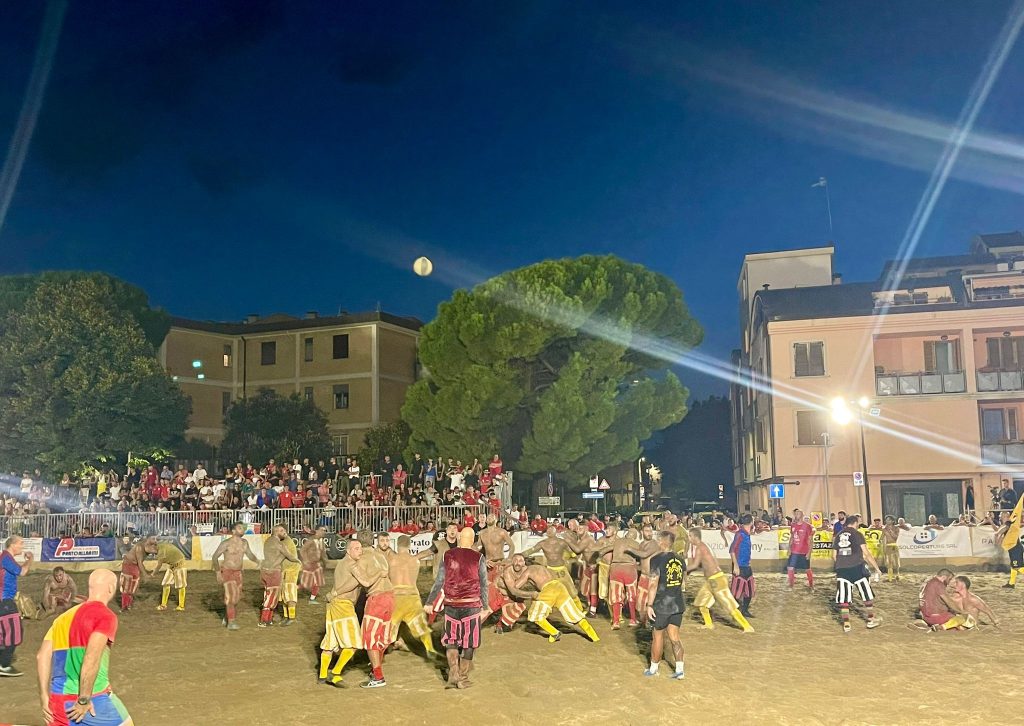 Sono i Gialli di Santo Stefano la prima finalista dell’edizione 2024 della Palla Grossa, imponendosi 21-10 sui Rossi di Santa Trinita. La semifinale inizia con mezz’ora di ritardo per allestire negli ultimi dettagli l’arena di piazza del Mercato Nuovo, ma poi quando inizia la sfida, lo spettacolo diventa subito avvincente per il folto pubblico presente sugli spalti. I Leoni passano immediatamente in vantaggio con Righini, ma i Rossi di Santa Trinita ribaltano la situazione trascinati da Margheri. Il vantaggio delle Aquile dura poco perché Santo Stefano infila due poste di fila per il momentaneo 3-2. La gara è equilibrata. Le Aquile impattano 3-3, Nencioni firma il 4-3 dei Rossi e Lucchesi firma il 4-4 dei Gialli. L’equilibrio dura fino al 5 pari. Poi diventa un monologo di Santo Stefano anche grazie all’inferiorità numerica delle Aquile per infortunio. I Gialli volano sul 10-5 trascinati da Chelli e Del Bene. A cavallo fra il 26′ e il 35′ si gioca posta a posta, con Santa Trinita ad accorciare 12-8. Poi Santo Stefano dilaga, arrivando al 48′ sul 18-8. Al 50′ i Rossi hanno un moto d’orgoglio e firmano la nona posta, utile per ridurre il passivo. Le ultime battute di gioco vedono i Gialli insaccare altre tre poste, l’ultimo bersaglio è dei Rossi per il 21-10 definitivo. Santo Stefano vola quindi in finale, aspettando la rivale per il match in programma sabato prossimo, 14 settembre, sempre nell’arena di piazza del Mercato Nuovo.
