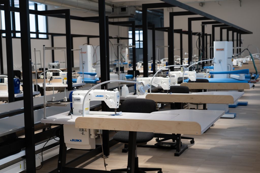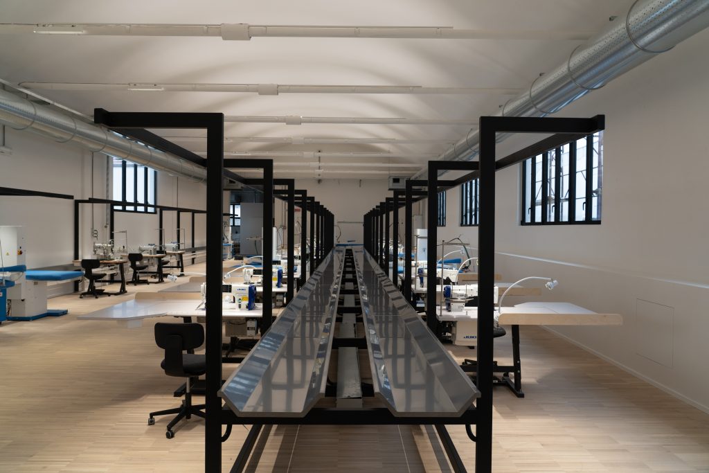 Il nuovo Beste Lab, infatti, non ospiterà solo la scuola per addetti del settore abbigliamento. L’immobile si estende su 5mila metri quadrati: al piano terra sono situati il magazzino e la logistica della divisione abbigliamento, già operativo. Il primo piano sarà dedicato, appunto, alla formazione, che sarà gestita da Accademia holding in collaborazione con Its Academy Mita del Pin e sarà attiva da gennaio. All’ultimo piano sono in via di ultimazione e tra meno di un mese si attiveranno due laboratori di confezione, taglio e cucito a servizio di altrettante maison del lusso, Brunello Cucinelli e Lvmh. “La sfida è quella di avere in un unico ambiente l’attività lavorativa e quella formativa per i futuri artigiani del comparto abbigliamento”, ha detto Matteo Santi.
