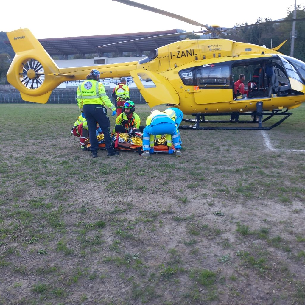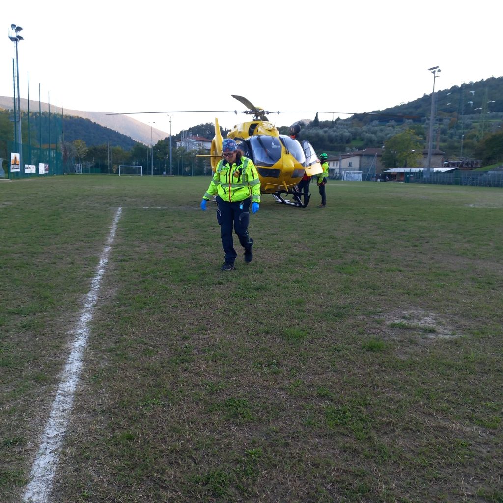 Sul posto è giunta la Misericordia di Vaiano, inviata dal 118, che ha poi allertato l’elisoccorso Pegaso, atterrato al campo di calcio vicino al luogo dell’incidente.