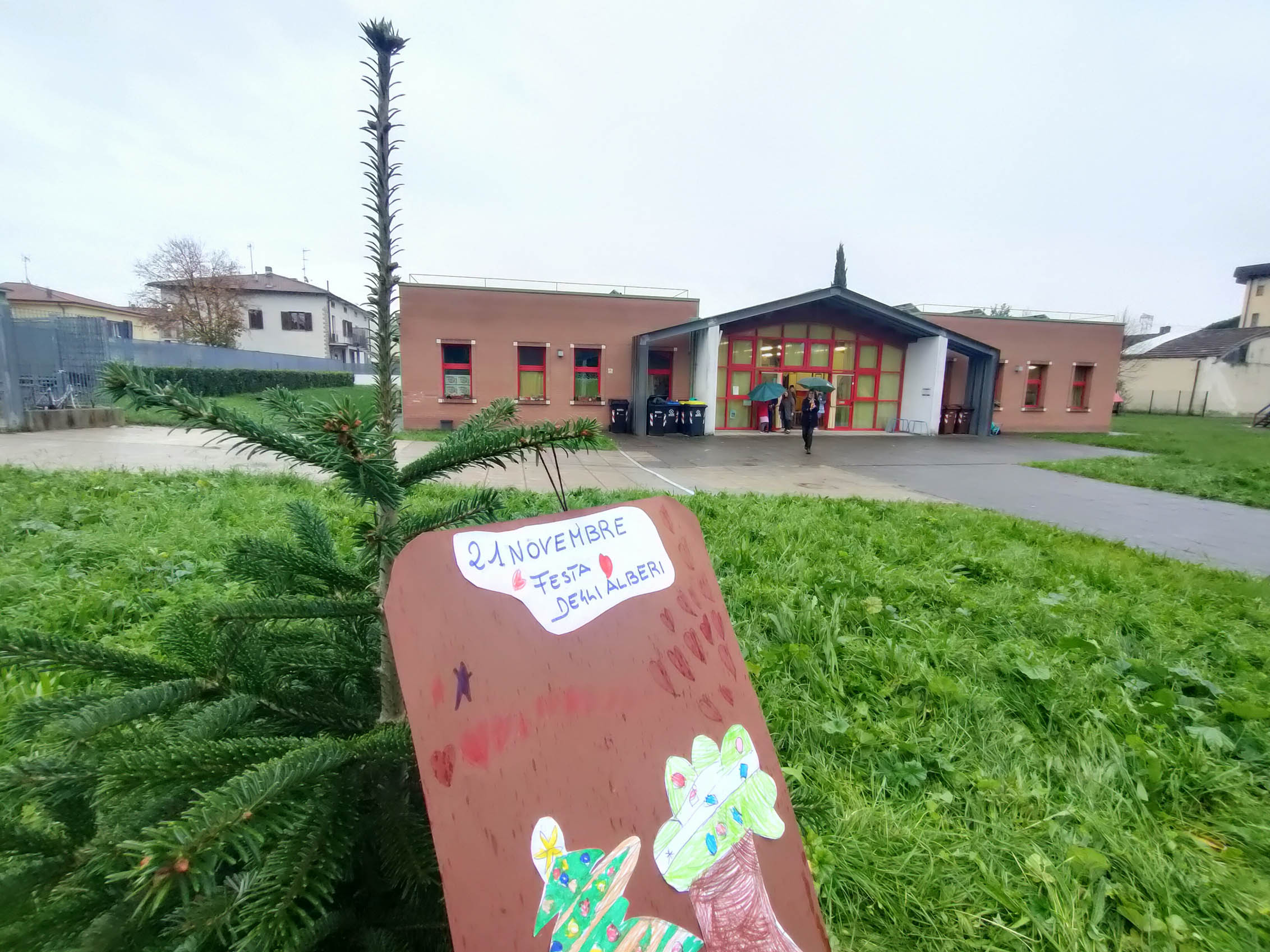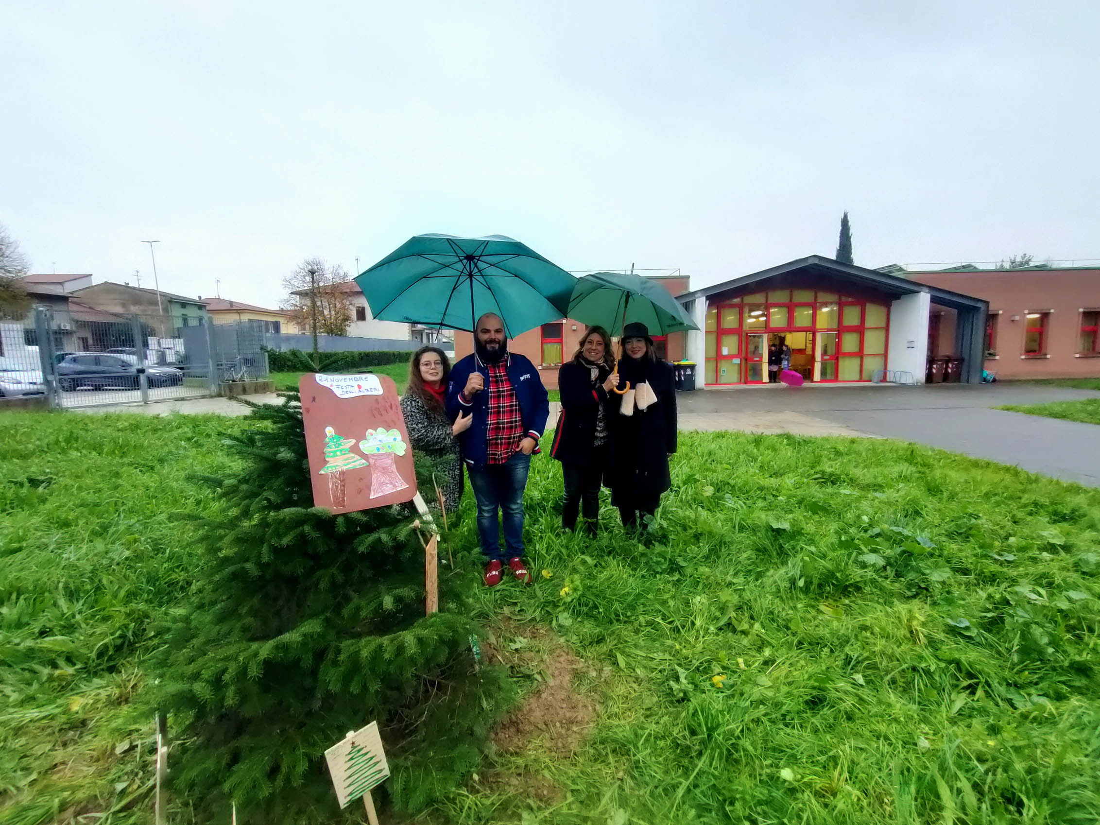 La scuola d’infanzia Carlo Alberto Dalla Chiesa a Mezzana ha un nuovo albero nel proprio giardino. Si tratta di un piccolo abete piantato ieri, 21 novembre, in occasione della giornata nazionale degli alberi. Nonostante la pioggia incessante, le maestre, insieme ai bambini – due per ogni classe – non hanno rinunciato a celebrare la ricorrenza e ad accogliere il piccolo abete, piantato grazie agli operai del Comune, esattamente a metà tra il plesso A e quello B.