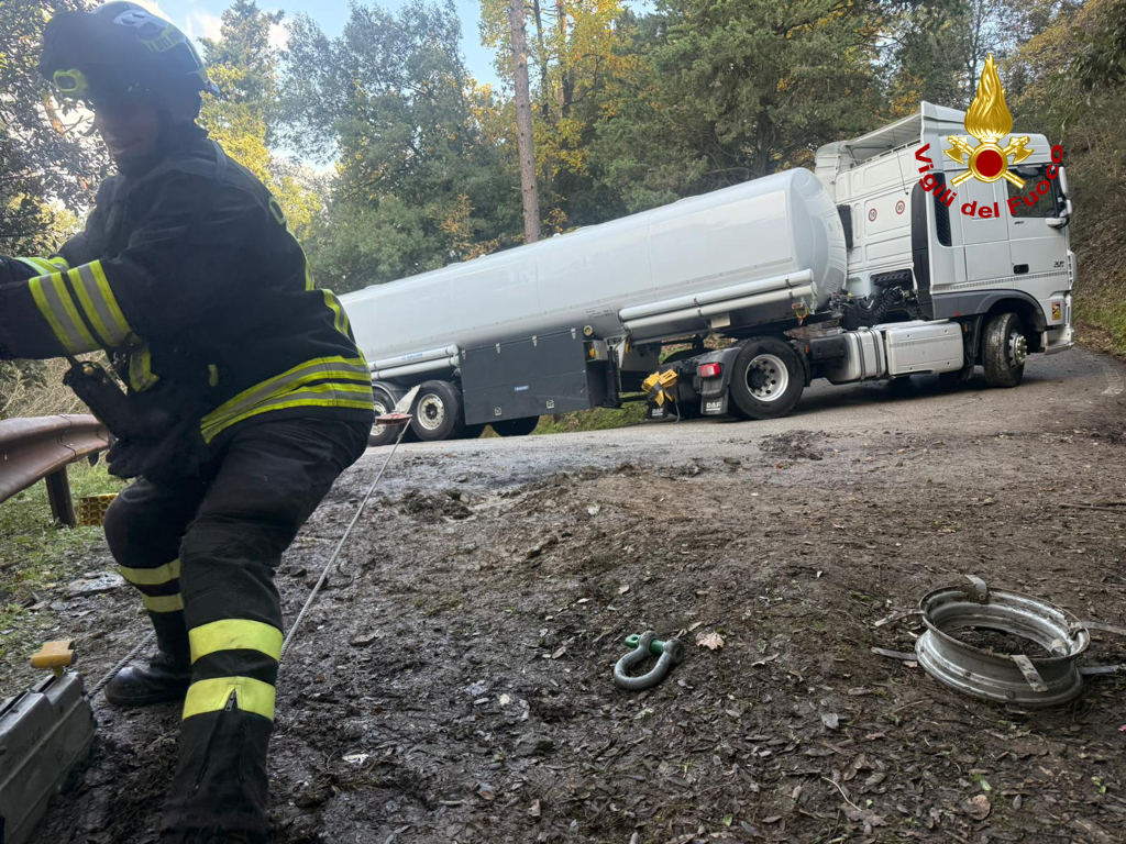 Si sono concluse questo pomeriggio, poco dopo le 14, le operazioni di rimozione dell’autocisterna che era rimasta incastrata 3 giorni fa in Via Madonna del Papa, a Carmignano. I vigili del fuoco del comando di Prato sono stati in questi giorni impegnati, sia per fare assistenza, durante le operazioni di travaso, che per agevolare il veicolo nelle manovre, movimentandolo anche mediante l’utilizzo di argani a mano. Sono attualmente in corso le operazioni di bonifica della sede stradale.