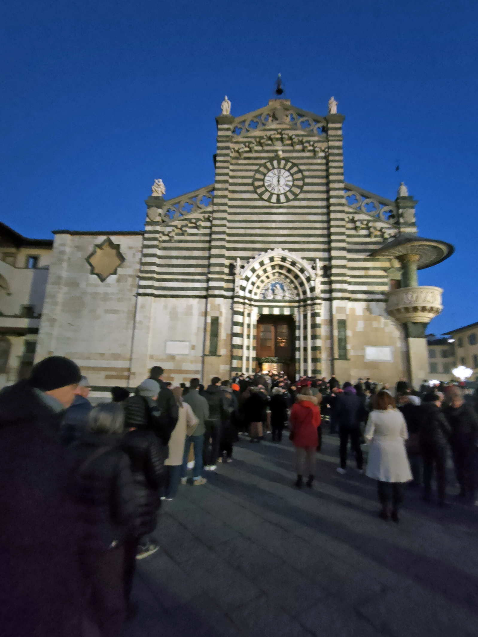 L’indulgenza giubilare. Da oggi la cattedrale è chiesa giubilare e può essere meta di pellegrinaggi per ottenere l’indulgenza. Per decreto del vescovo Nerbini nella diocesi di Prato sono costituite chiese giubilari anche i santuari mariani (Carceri, Soccorso, Pietà e Giglio), la basilica di Santa Caterina de’ Ricci, la pieve di Sant’Ippolito di Vernio e le cappelle dell’ospedale Santo Stefano e quella del carcere della Dogaia. In queste chiese sarà possibile ottenere l’indulgenza giubilare, secondo le consuete disposizioni: confessione sacramentale, comunione eucaristica e preghiera secondo le intenzioni del Sommo Pontefice e le specifiche disposizioni stabilite dalla Penitenzieria Apostolica per il Giubileo 2025.