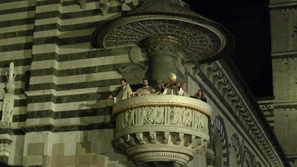 Si è rinnovata nel pomeriggio la tradizione tutta pratese dell’Ostensione della Sacra Cintola, la reliquia mariana simbolo della Chiesa e della città. Tanti i fedeli che hanno preso parte al rito che è stato officiato, dopo il canto dei vespri, dal vescovo Giovanni Nerbini. Presente la sindaca Ilaria Bugetti accompagnata dal gonfalone e dai valletti del Comune di Prato. Testimoni del rito: Dalila Mazzi, imprenditrice nonché presidente della Camera di Commercio di Pistoia-Prato, e il notaio Renato D’Ambra.