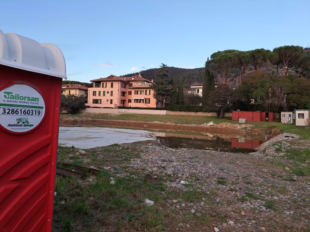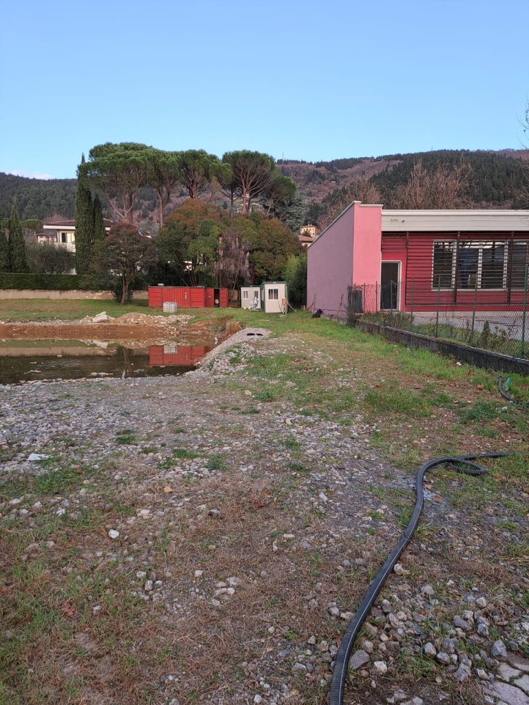 Attualmente, le attività in corso consistono nello svuotamento dell’acqua accumulata nel cantiere. Una volta completata questa fase, si procederà con il termine dello scavo, che consentirà di