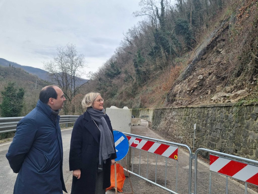 Entro la primavera la Regione presenterà alla Provincia e ai Comuni della Val Bisenzio una serie di soluzioni di sviluppo e potenziamento della Sr325, che dovranno definire in modo puntuale il futuro della principale arteria della vallata. Le risposte sono attese dall’aprile 2024, quando dopo l’emergenza della frana su Camino, la Regione Toscana firmò assieme agli enti locali un protocollo per la mobilità integrata della Val di Bisenzio e della provincia pratese. Il 1 marzo 2024 la frana tra Le Coste e Camino tagliò in due la Valbisenzio provocando gravi disagi ai collegamenti fra Prato e la Vallata, privi di una vera viabilità alternativa. La fragilità del territorio si è manifestata una volta di più stanotte a San Quirico di Vernio con un’altra piccola frana che ha portato all’istituzione del senso unico alternato in quel tratto di Sr 325 (nella foto il sopralluogo del presidente della Provincia Simone Calamai e della sindaca di Vernio Maria Lucarini).
