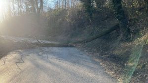 Vento: a Vernio albero cade sulle auto in sosta. Un albero ostruisce la strada per Schignano
