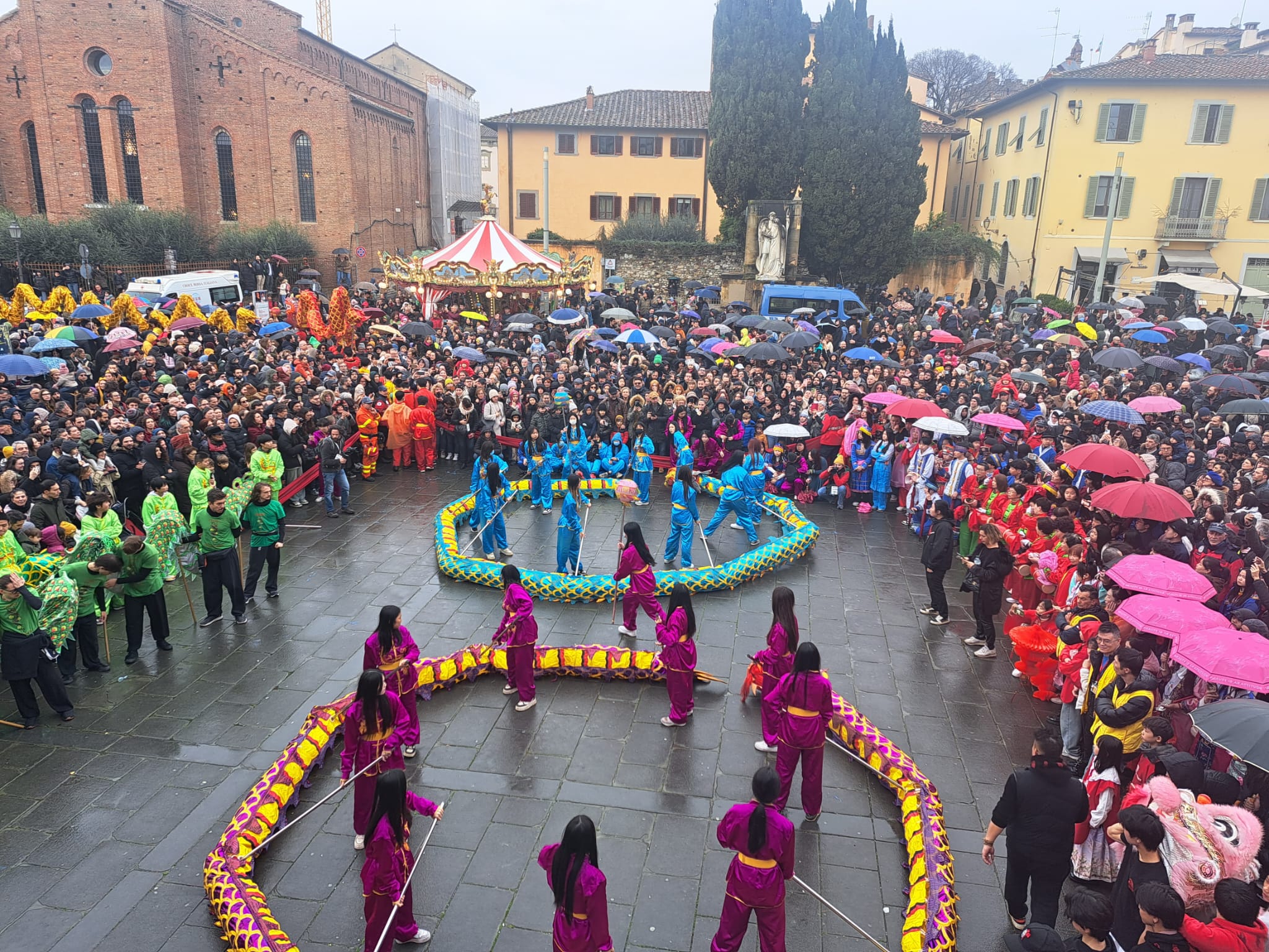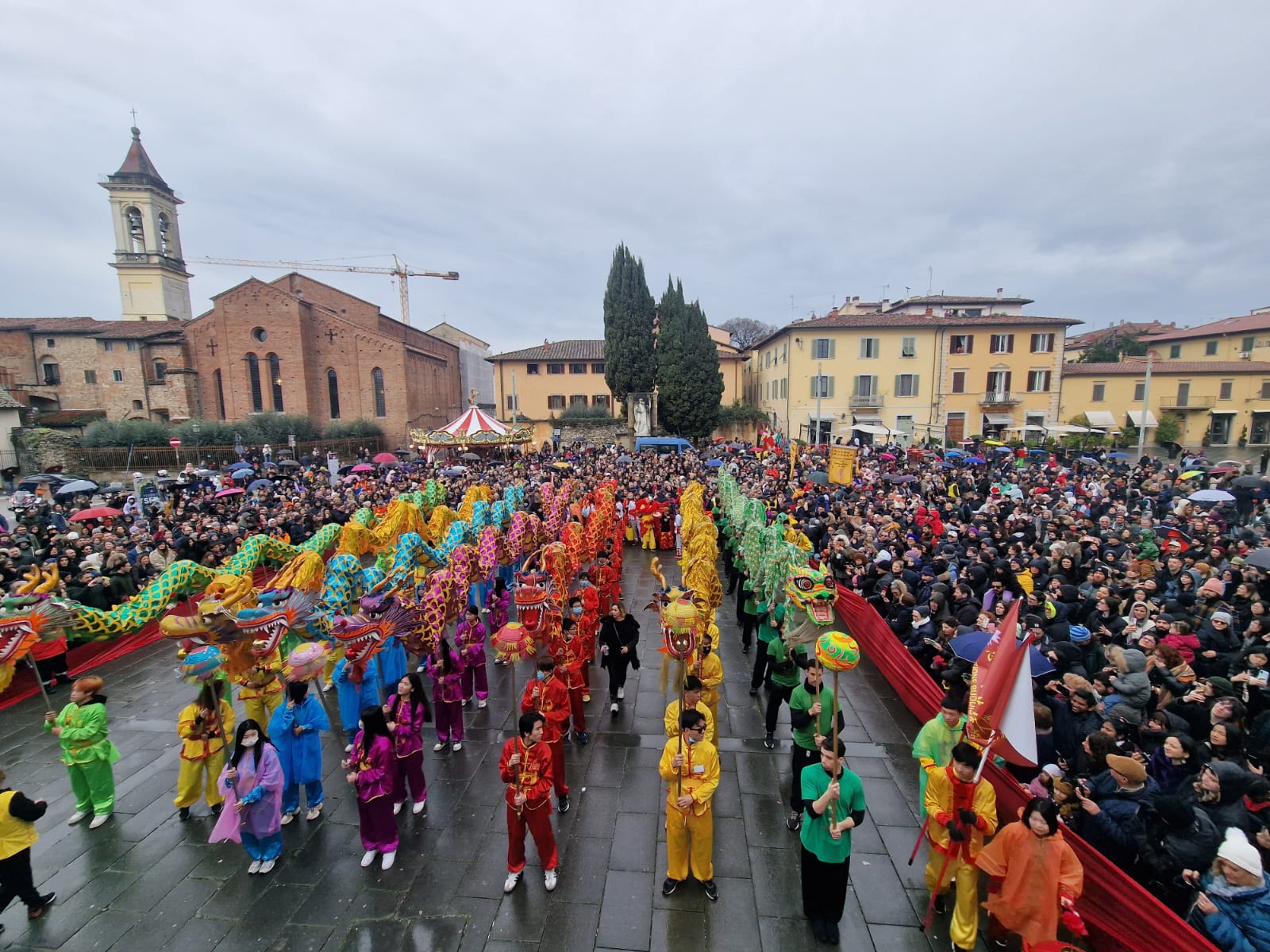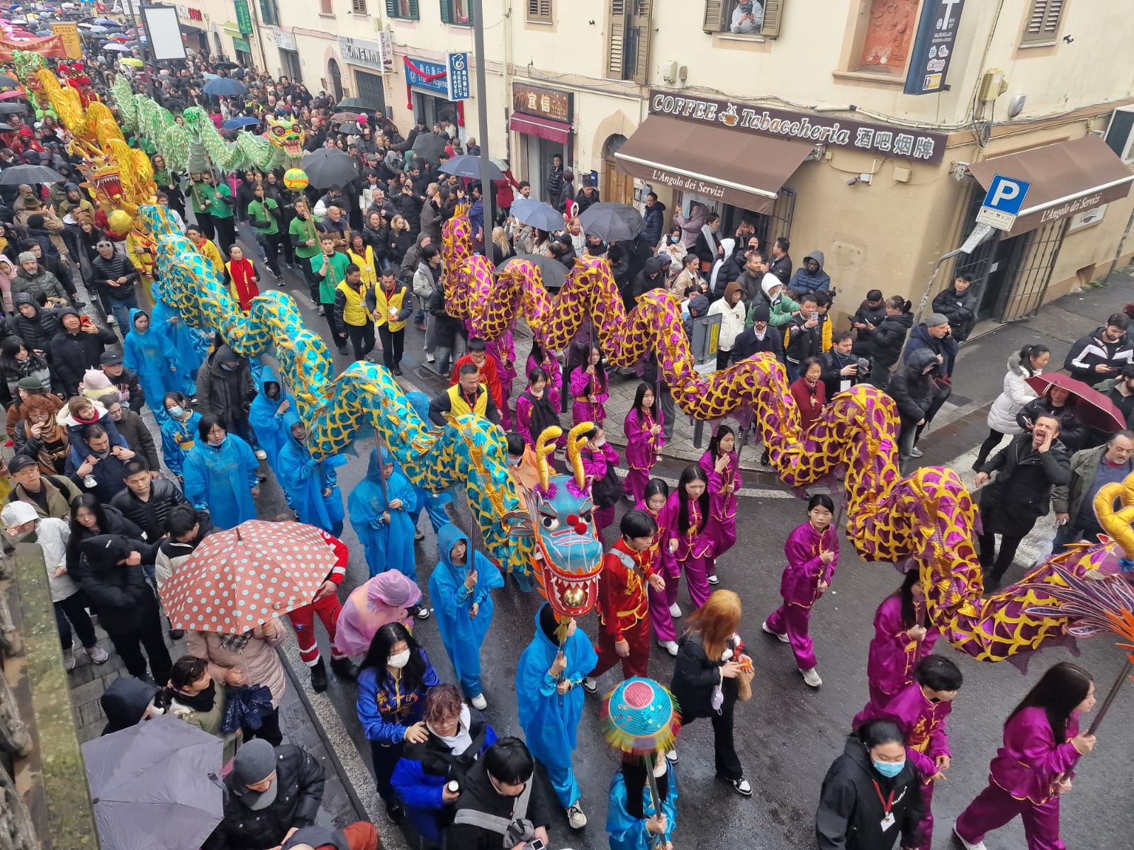 Nonostante il tempo incerto la partecipazione è stata massiccia e non soltanto da parte della comunità cinese, con tanti pratesi che hanno assistito alla manifestazione e sfilato lungo il percorso.
