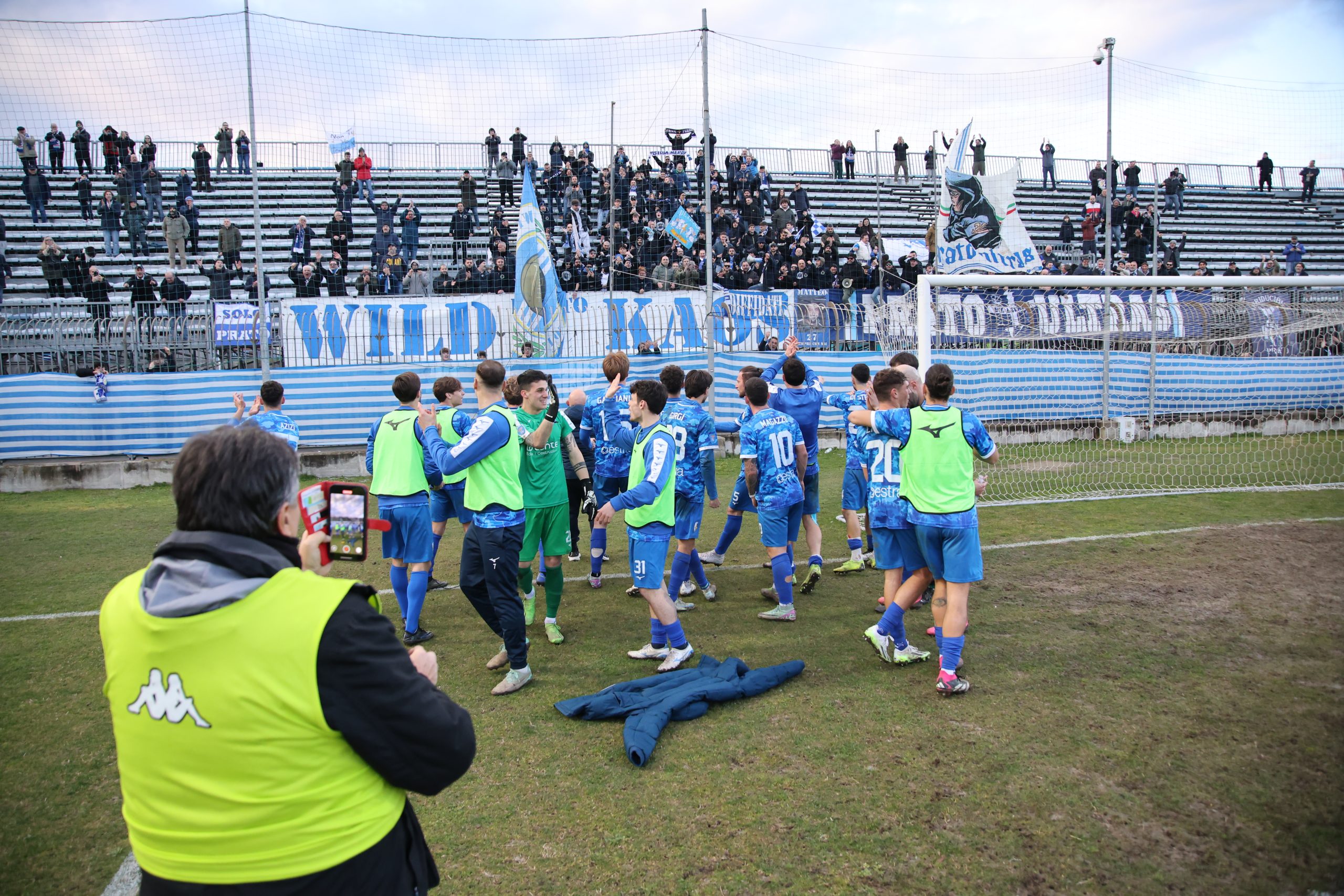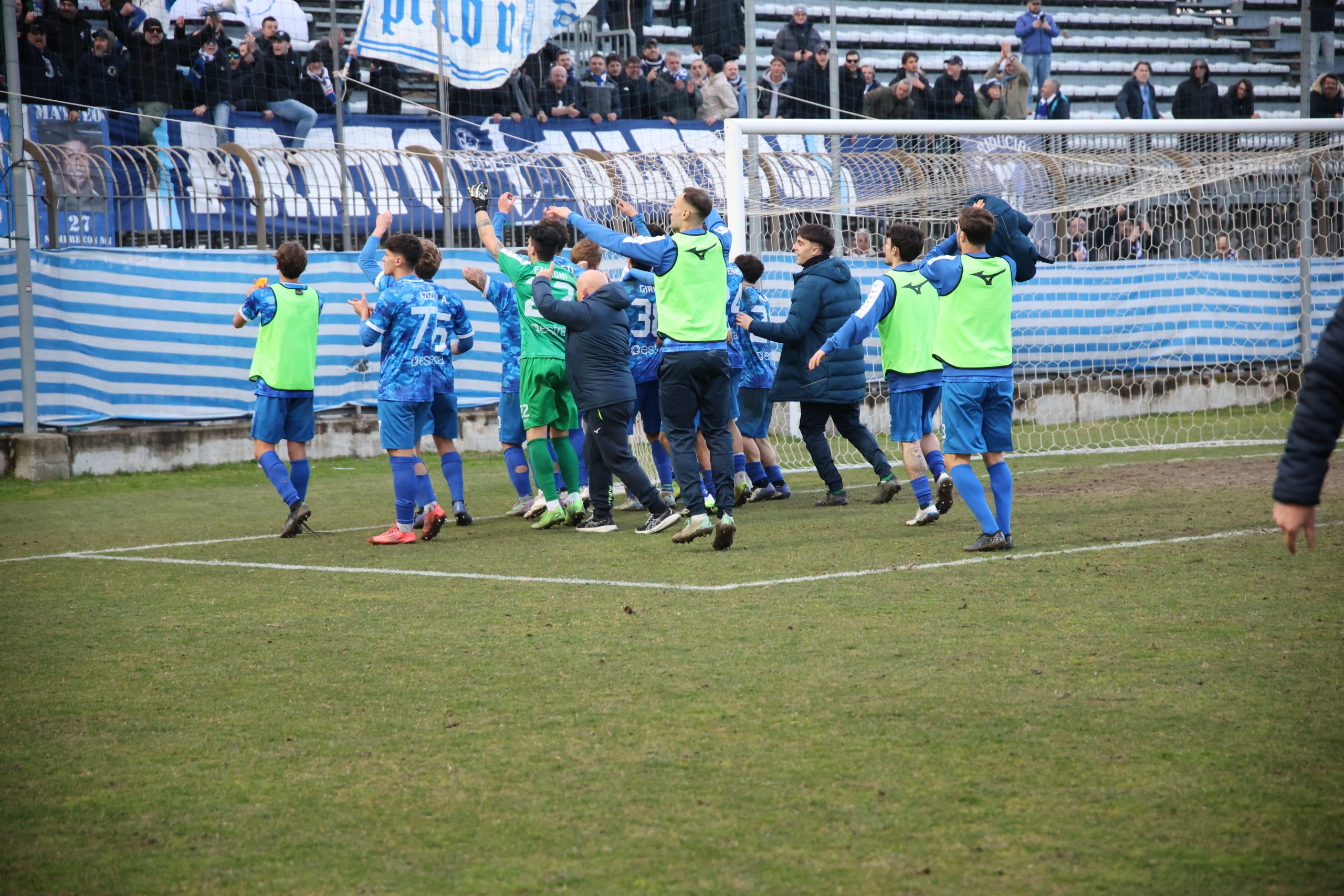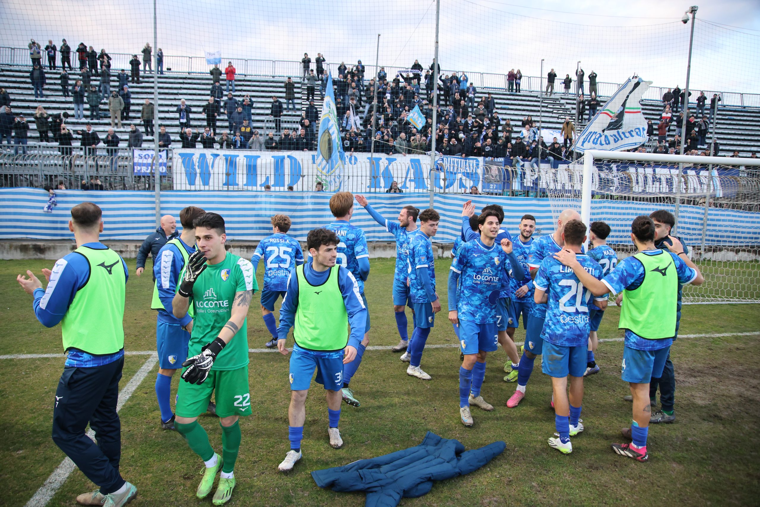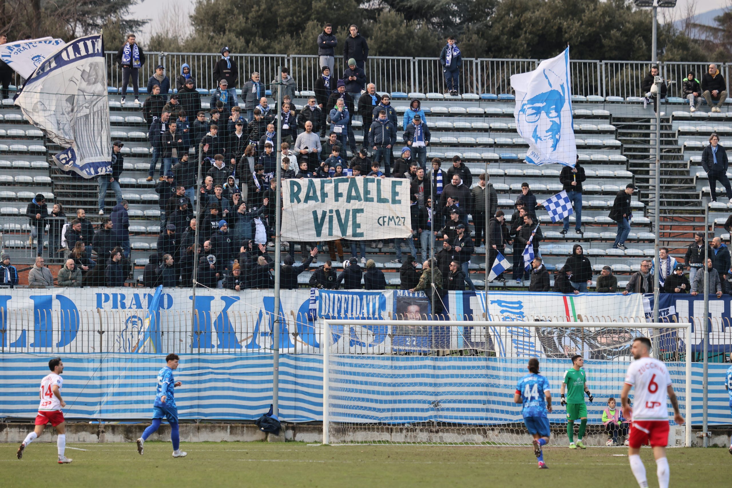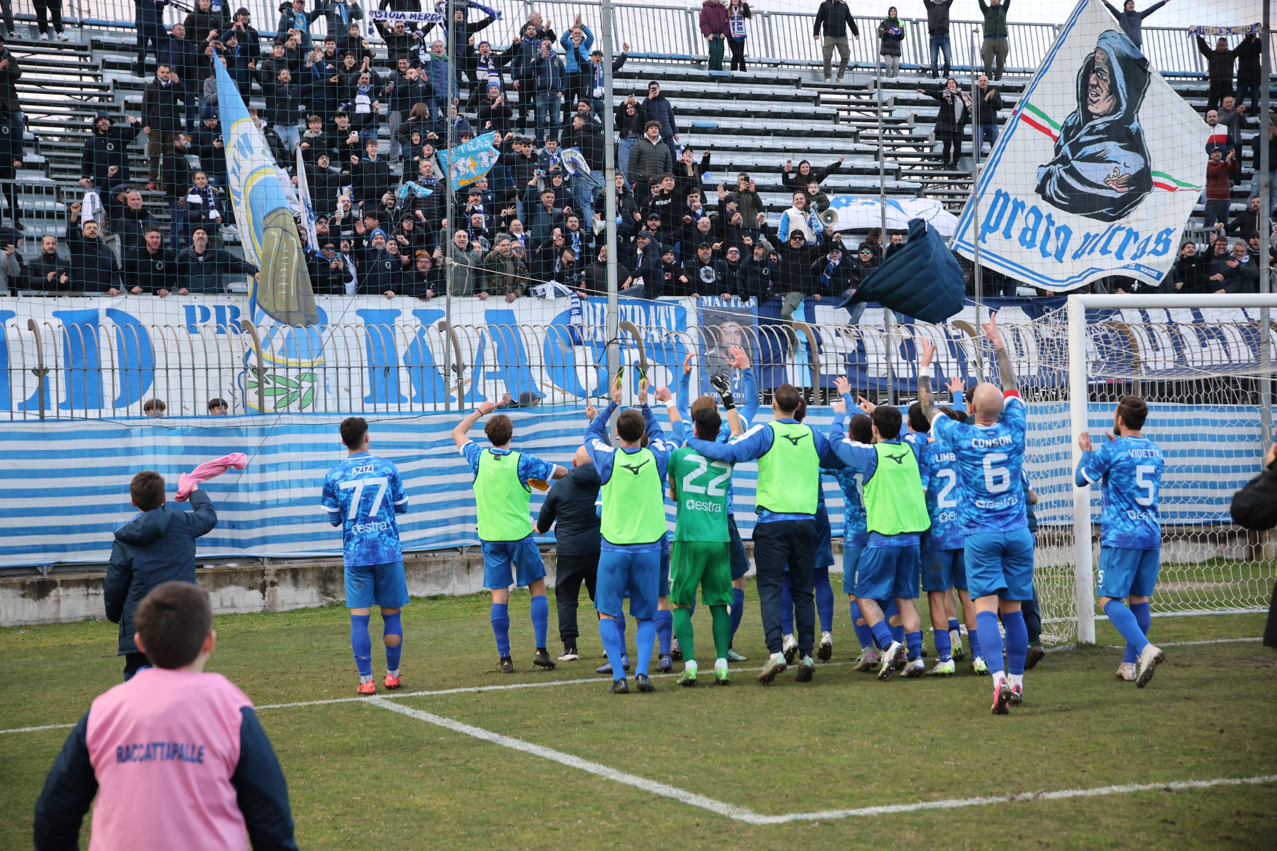 Tifo bollente in tribuna con buona rappresentanza ospite e tanti tifosi biancazzurri presenti. Si parte col Piacenza che va al tiro con Recino da centro area: alto sopra la traversa al 4’. Risponde Mazza al 9’ con un bel tiro dai venti metri finito anche questo sopra il montante. Il taccuino torna a sporcarsi al 26’ con la combinazione Cozzari-Di Stefano: conclusione a giro del numero 24 laniero e palla di pochissimo alta sopra l’incrocio. Preludio al gol che arriva al 28’: cross di Remedi da destra, Limberti tiene palla sul lato opposto, palla per Cozzari che serve l’accorrente Girgi che ingaggia un bell’uno-contro-uno con la difesa biancorossa e mette dentro (1-0). Pronta la reazione del Piacenza che si riversa in attacco costringendo il Prato a stare troppo tempo in difesa e a beccare qualche cartellino pesante, come quello a Galliani al 39’. Nell’intervallo nervi tesi negli spogliatoi al rientro e ne fa le spese Barbuti che viene espulso da Santinelli per un diverbio con un avversario. In apertura di secondo tempo, il nervosismo si fa sempre più consistente e l’arbitro fa fatica a tenere a bada i 21 giocatori in campo. All’8° Fantoni si supera sul diagonale ravvicinato di D’Agostino e mister Marco Mariotti corre ai ripari inserendo Giusti per Ciavarelli. La squadra laniera lotta col cuore e non disdegna comunque di rispondere di rimessa, come al 18’ con Remedi che colpisce la traversa dal limite dopo una bella volata di Di Stefano sulla sinistra. Il neo entrato Stefanoni al 21’ si fa subito notare con un diagonale che sfiora il palo della porta di Fantoni. Traversa al 25’ sempre con Stefanoni di testa, che colpisce la parte alta del montante. Fuori Cozzari e Di Stefano, dentro Alessio Rossi e Magazzù. Brividi su una incornata di Recino al 28’: fuori di poco. La partita prosegue con tanta elettricità in campo. I biancazzurri lottano col cuore, con tutte le energie rimaste, rafforzate da quelle proposte dai nuovi entrati come Azzizi (al posto di Remedi). Al 90’ Recino dà un cioccolatino a Castelli che si avvita in area, colpisce bene ma prende la traversa. Nei sei minuti di recupero il Piacenza spinge ma non segna, come sul tiro di Recino dopo un palo su angolo di D’Agostino e salvato da Galliani di petto a Fantioni battuto. E il Prato può festeggiare insieme ai suoi tifosi in un pomeriggio.