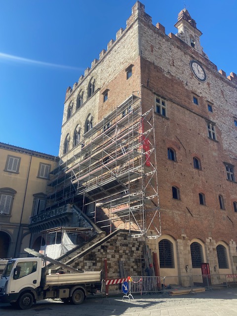 Sono iniziati i lavori di restauro della facciata sud-est di Palazzo Pretorio, quella che guarda la fontana del Bacchino. Il prospetto presenta infatti segni di degrado dovuti agli agenti atmosferici, tra cui la scagliatura e il rigonfiamento della pietra serena per le infiltrazioni d’acqua, l’erosione parziale dei mattoni con allentamento dei giunti di congiunzione e la presenza di microvegetazione e croste nere particolarmente evidenti sulle parti in alberese. L’intervento di restauro prevede la rimozione delle formazioni biologiche, il consolidamento delle fratture e dei distacchi e l’applicazione di una sostanza protettiva su tutto il paramento murario. “L’intervento rappresenta il primo lotto di lavori di restauro di Palazzo Pretorio, – dice l’assessore ai Lavori Pubblici Marco Sapia – nell’ambito del programma di opere che nei lotti successivi consentirà il restauro completo del Palazzo”. I lavori saranno terminati alla fine di aprile con un investimento complessivo di 156mila euro da parte del Comune.