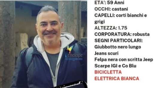 A lanciare l’allarme sui sociale è stata l’associazione “Penelope”. “Lunedì è uscito dal posto di lavoro nella pausa pranzo per tornare a casa come tutti i giorni e rientrare poi al lavoro. Non è rientrato a casa né al lavoro. Usa spostarsi casa-lavoro con una bicicletta elettrica bianca. La famiglia è seriamente preoccupata. Qualcuno lo ha incontrato? Ha visto una bicicletta elettrica bianca?” si legge nel post pubblicato su Facebook. Chiunque avesse informazioni utili è pregato di contattare la stessa associazione (3455019051) oppure il 112.