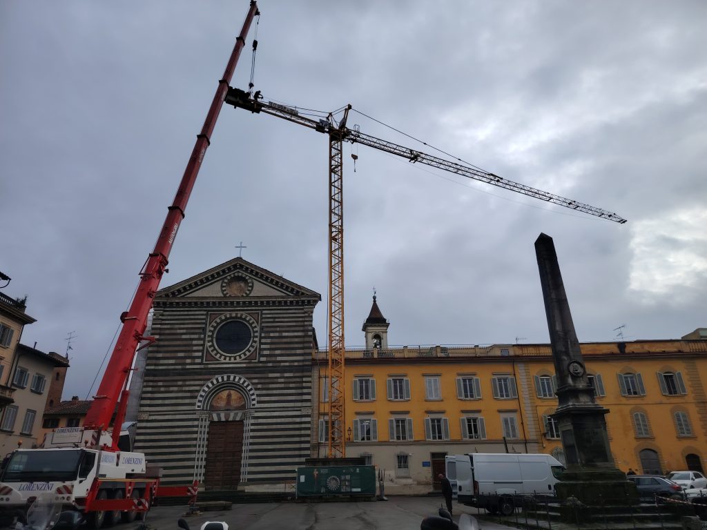 Cosa è stato fatto. Il primo lotto dei lavori ha riguardato la facciata principale della chiesa, il restauro delle vetrate e la riqualificazione dell’impianto elettrico; il secondo lotto, sopracitato, ha coinvolto la facciata absidale, parte delle facciate laterali, le cappelle absidali e il restauro del tetto sopra la zona presbiterale. Il terzo lotto, in via di completamento, consisterà nel consolidamento dell’aula della chiesa e il restauro delle coperture lignee decorate e delle superfici di pregio. La direzione dei lavori è affidata agli architetti Sara Marrani e Riccardo Berti (quest’ultimo ha il compito di coordinare il gruppo multidisciplinare). I restauri architettonici sono stati affidati all’impresa Mannucci. Tutti gli interventi sono stati eseguiti sotto l’alta sorveglianza della Soprintendenza archeologica, belle arti e paesaggio della Città metropolitana di Firenze, rappresentata da Giusppina Clausi, Silvia Benassai e Francesca Leolini, e in collaborazione con l’Ufficio beni culturali della diocesi di Prato.