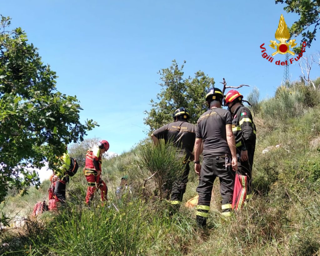 In una zona impervia, anche il personale del Saf soccorso speleo alpino fluviale