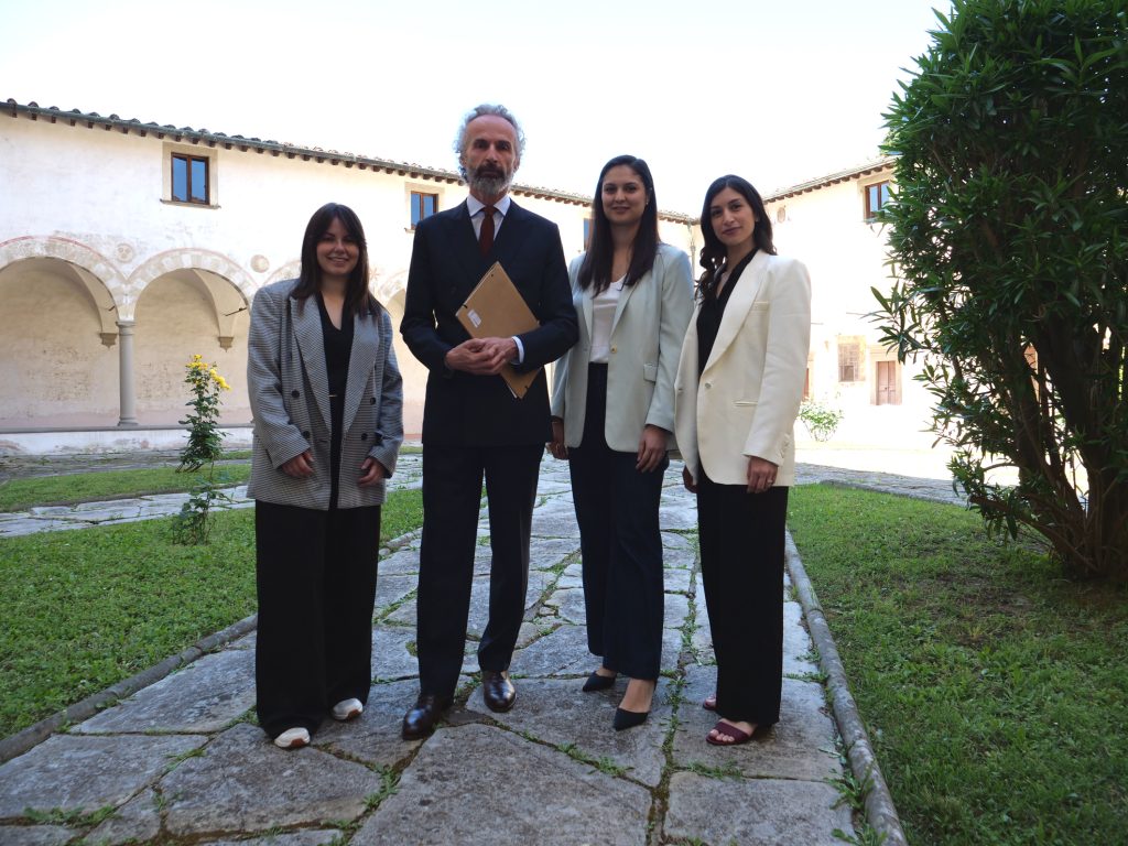 Edoardo Gori della Fondazione Biti con tre laureate pratesi sostenute negli studi dalla Fondazione Biti: Nunzia Porro, Vittoria Vaiani e Giulia Franchi