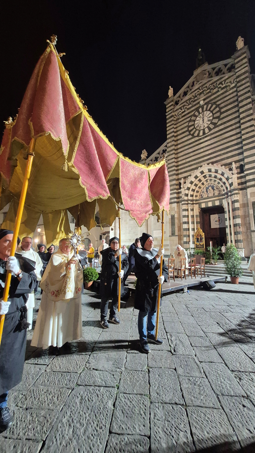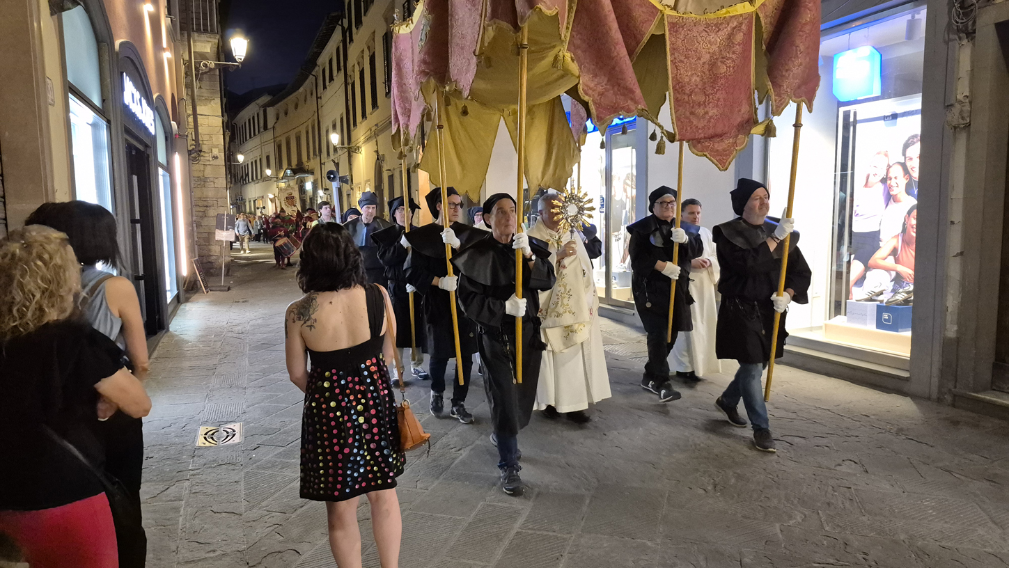 La processione, con il Santissimo Sacramento recato dal vescovo Nerbini sotto al baldacchino, si è svolta lungo questo itinerario: piazza Duomo, via Garibaldi, via Pugliesi, piazza Santa Maria delle Carceri, via San Bonaventura, via Ricasoli, piazza del Comune, via Cesare Guasti, via Luigi Muzzi, quindi rientro in piazza Duomo.