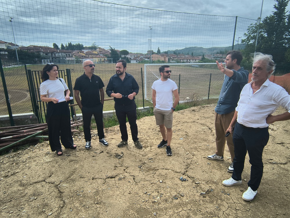 Procedono secondo programma e si concluderanno in autunno i lavori degli spogliatoi del nuovo campo sportivo che si sta realizzando a La Serra, nel Comune di Carmignano. Stamani visita al cantiere, accompagnati dal direttore dei lavori ingegner Alberto Casini e dal responsabile dell’Ufficio tecnico del Comune ingegner Stefano Venturi, del sindaco Edoardo Prestanti e degli assessori Chiara Fratoni (Opere pubbliche) e Jacopo Palloni (Sport). Il cantiere aperto riguarda il secondo lotto dell’intervento, che riguarda, per una spesa di 550 mila euro, la ricostruzione ex novo degli spogliatoi, con tanto di palestra, secondo la “filosofia” con la quale, sin dall’inizio, è stata concepita l’opera: «Non è solo un impianto sportivo – ha confermato il sindaco Prestanti –, qui sta nascendo un parco pubblico, ad uso e consumo dei cittadini».
