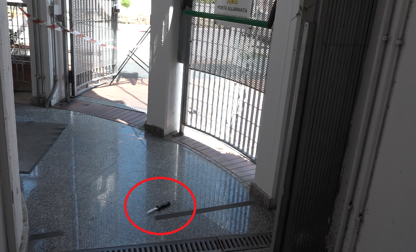 E’ ancora Sos sicurezza al Serraglio. I cittadini segnalano che da tempo la porta di accesso al parcheggio, danneggiata, è sempre aperta e favorisce incursioni indesiderate. Stamani siamo andati con la telecamera a documentare la situazione e proprio in quel punto, all’imbocco delle scale per i piani interrati, è spuntato un pugnale.