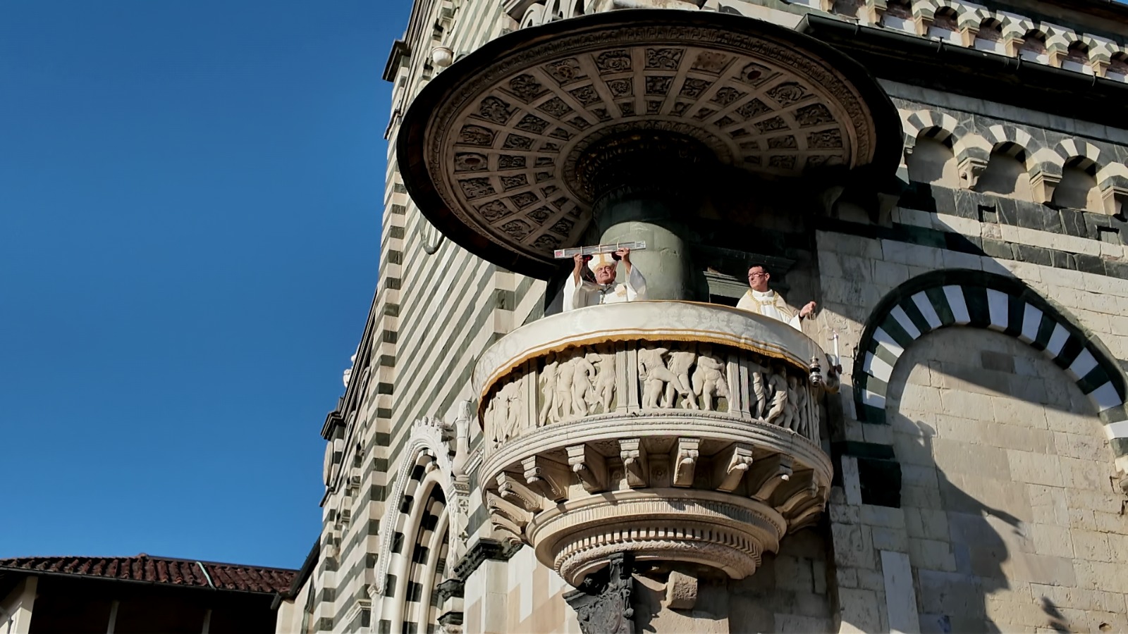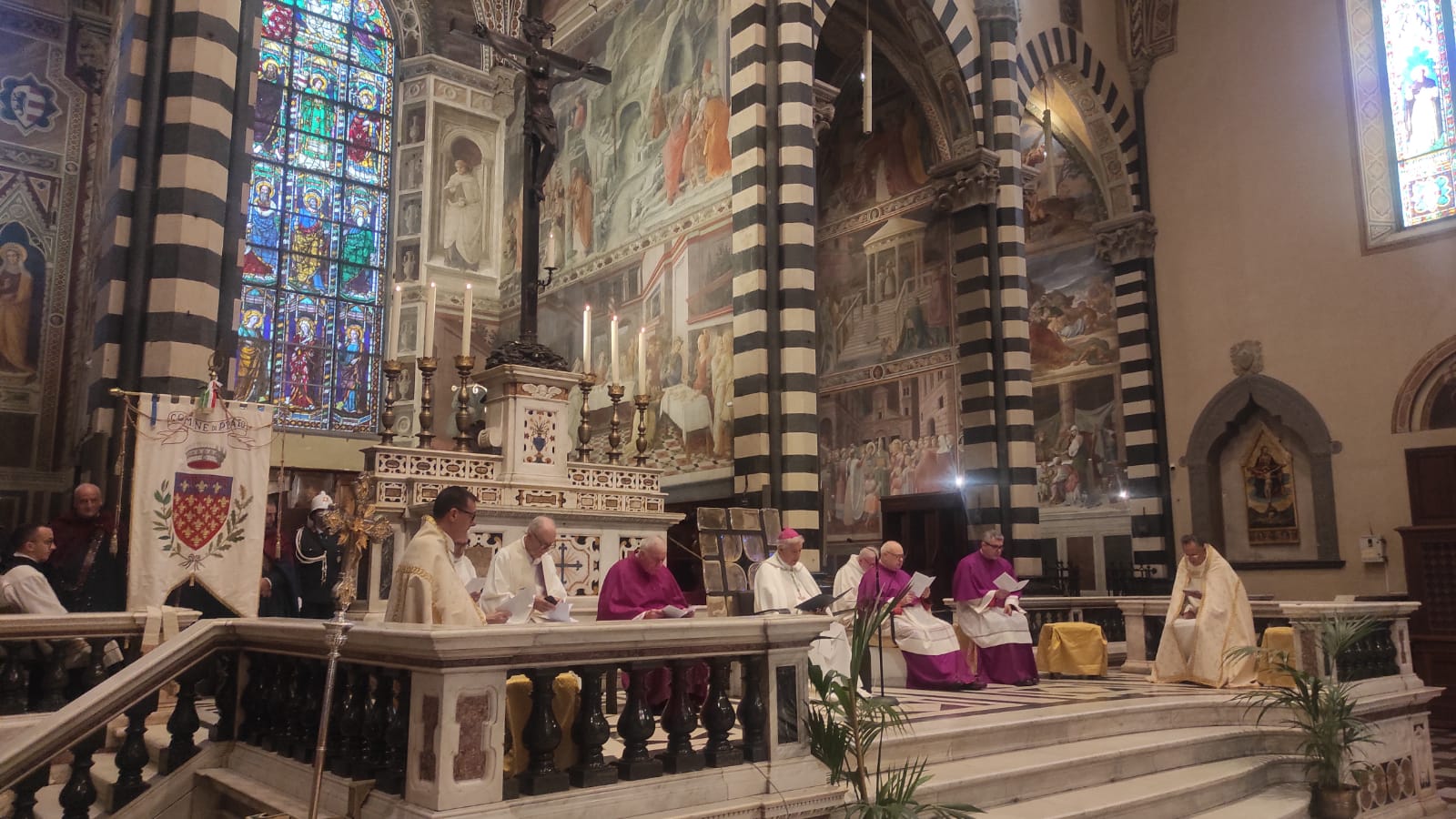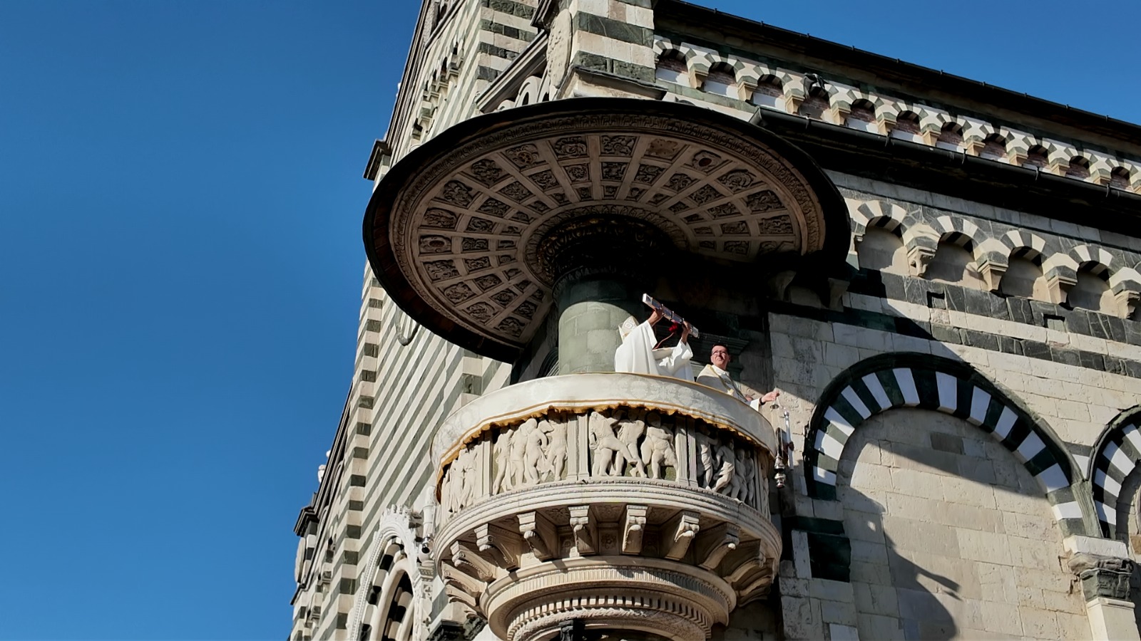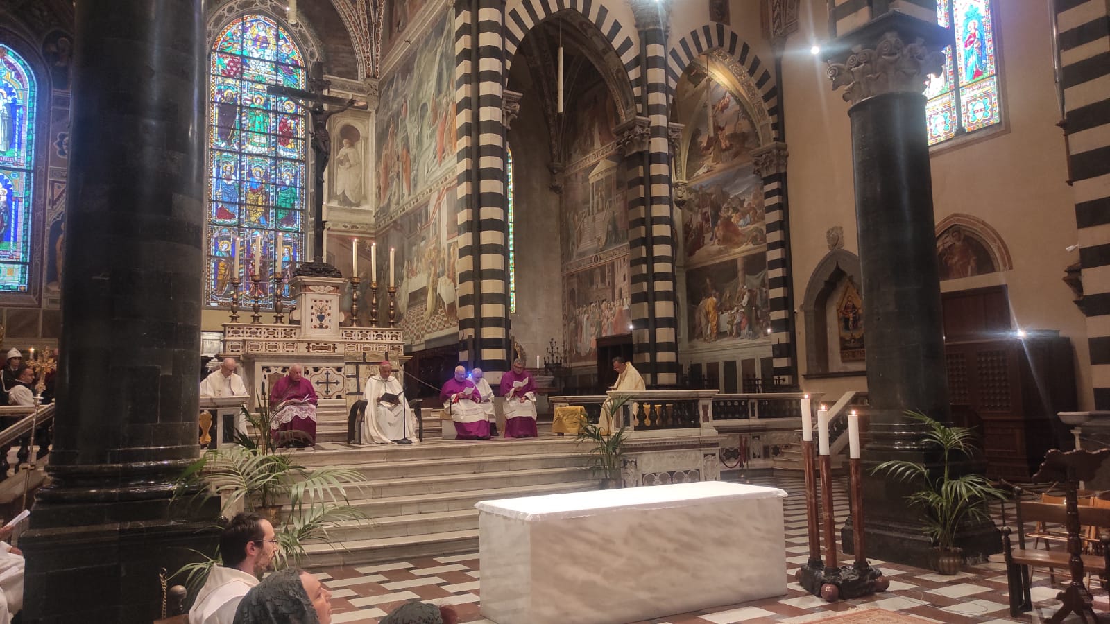 Anche quest’anno la festa dell’Assunta, a Prato, ha avuto il suo momento più atteso e identitario: la solenne ostensione della Sacra Cintola mariana. Nel pomeriggio di Ferragosto, nella basilica cattedrale di Santo Stefano, il vescovo Giovanni Nerbini ha mostrato la preziosa reliquia prima dall’interno, affacciandosi dal balcone affrescato dal Ghirlandaio, poi dal pulpito di Donatello.