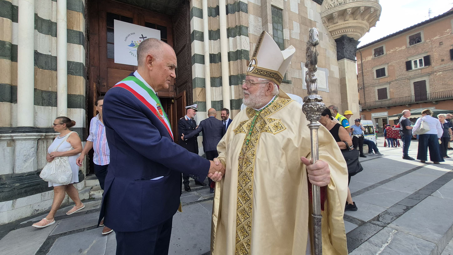 Il giorno della festa è iniziato con la celebrazione del pontificale. A presiederlo il vescovo di Prato monsignor Giovanni Nerbini ha invitato monsignor Giovanni Roncari, vescovo emerito di Grosseto e Pitigliano. La messa solenne è stata concelebrata dal clero diocesano. Nelle prime file erano presenti le autorità cittadine e i rappresentanti dei Comuni del territorio diocesano. Davvero tanti i pratesi che hanno partecipato alla funzione.
