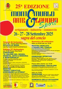 Montemurlo saluta l’arrivo dell’autunno con la 25esima edizione di “Montemurlo arte, lavoro e sport”, in programma da venerdì 26 a domenica 28 settembre. La manifestazione promossa dal Comune e dalla Pro Loco, in collaborazione con il Gruppo storico, la Fondazione Cdse, il Cgfs e il Liceo artistico “Umberto Brunelleschi”, propone un lungo fine settimana ricco di eventi.