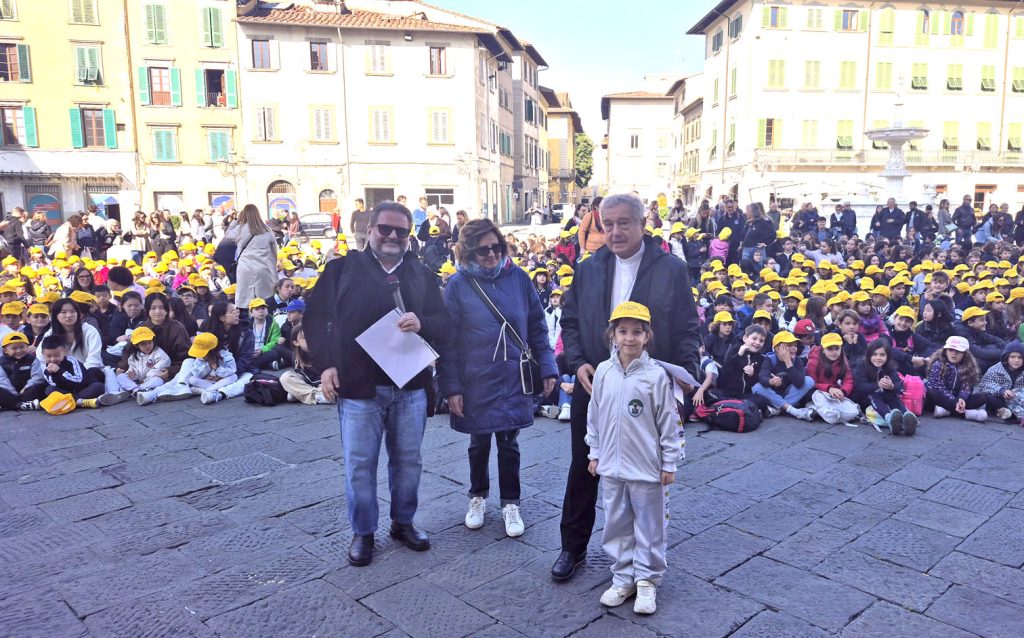 Questa mattina in piazza Duomo il Giubileo delle scuole cattoliche di Prato, presenti circa 1100 tra studenti e docenti. L'invito a donare «un soldo per Gaza». Quanto raccolto sarà inviato alla parrocchia di padre Romanelli