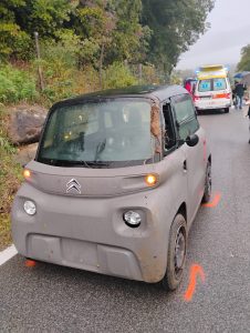 Masso invade la carreggiata, 16enne perde controllo della minicar