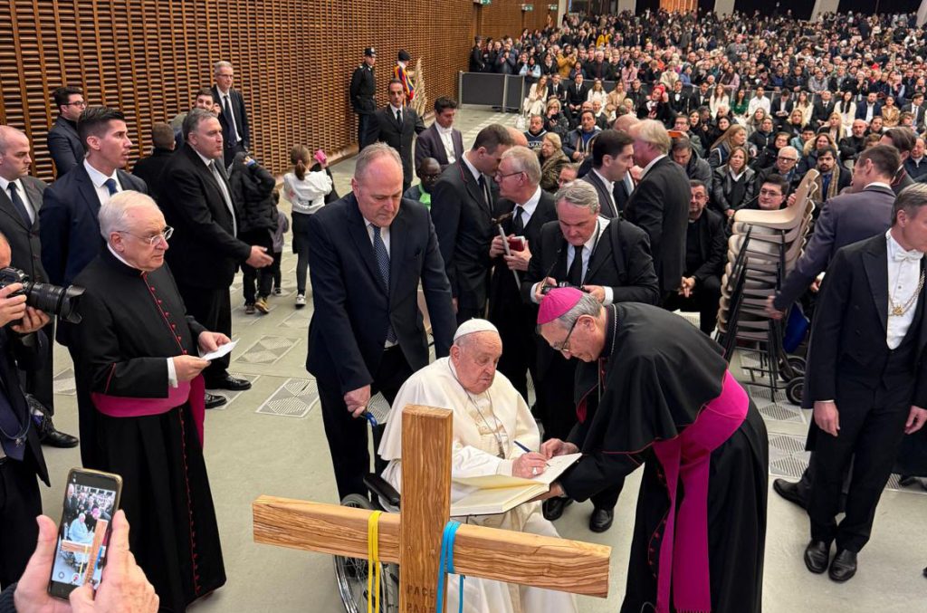 La Peregrinatio e l’icona Croce del Giubileo sono state concepite con il desiderio di non ridurre l’evento Giubilare ad alcune date, bensì di considerarlo come la testimonianza di quel pellegrinaggio di speranza che è», ha spiegato il vescovo Agostinelli, invitando le Misericordie presenti sul territorio nazionale a vivere l’anno giubilare come opportunità di riflessione spirituale, come «revisione della fede» e «una scelta continuativa di carità».